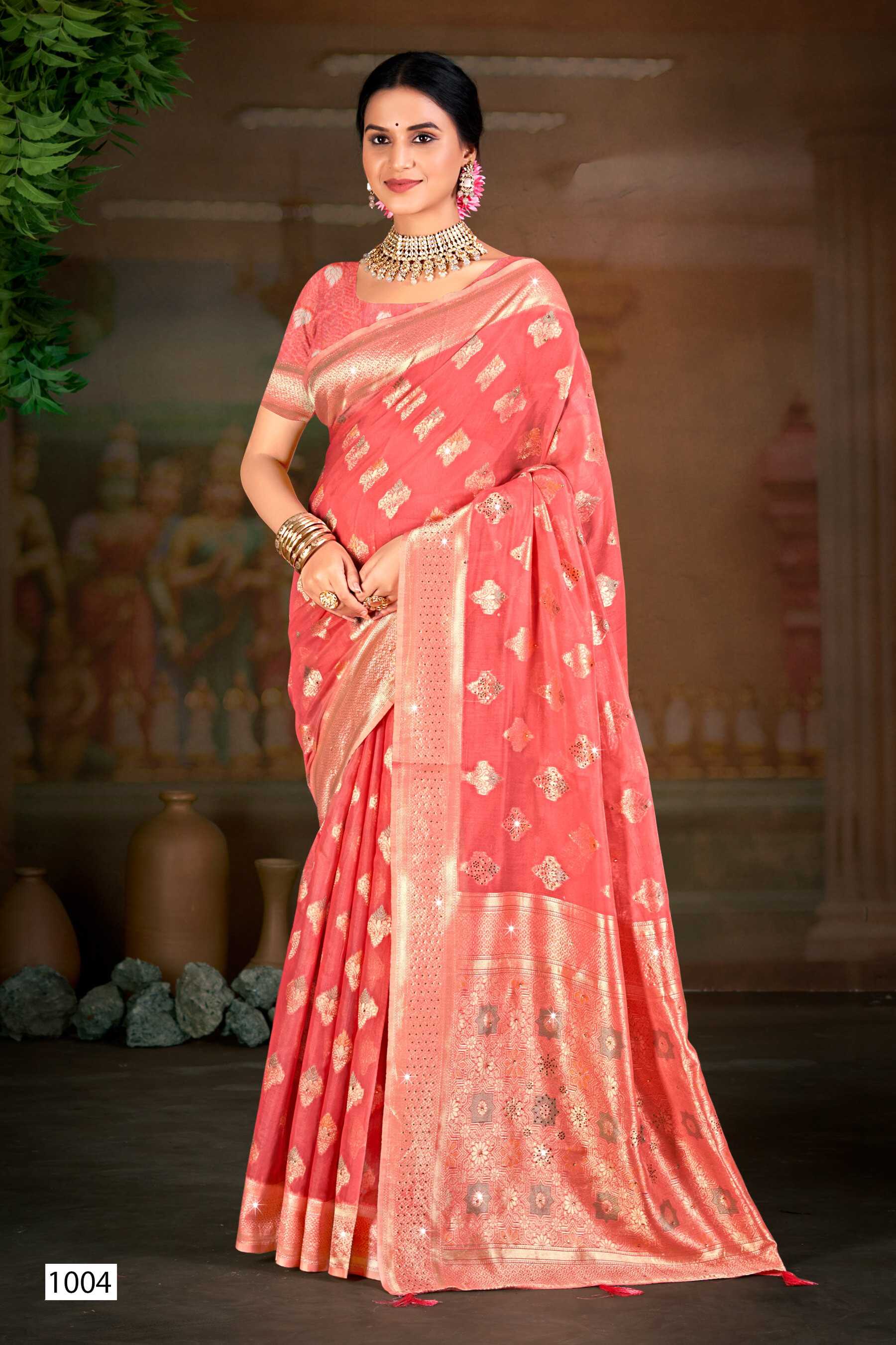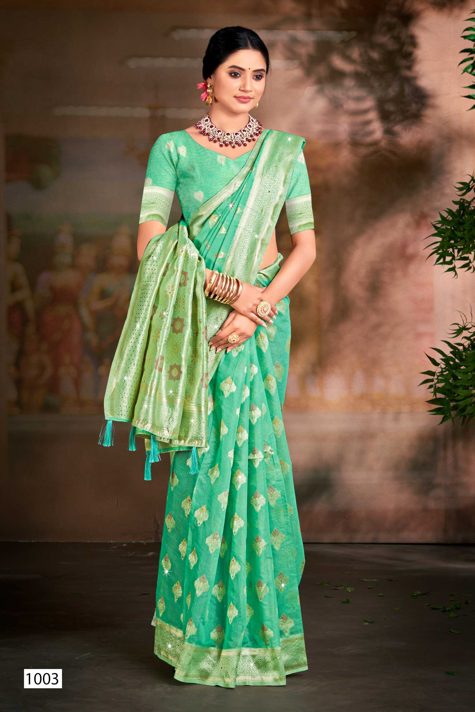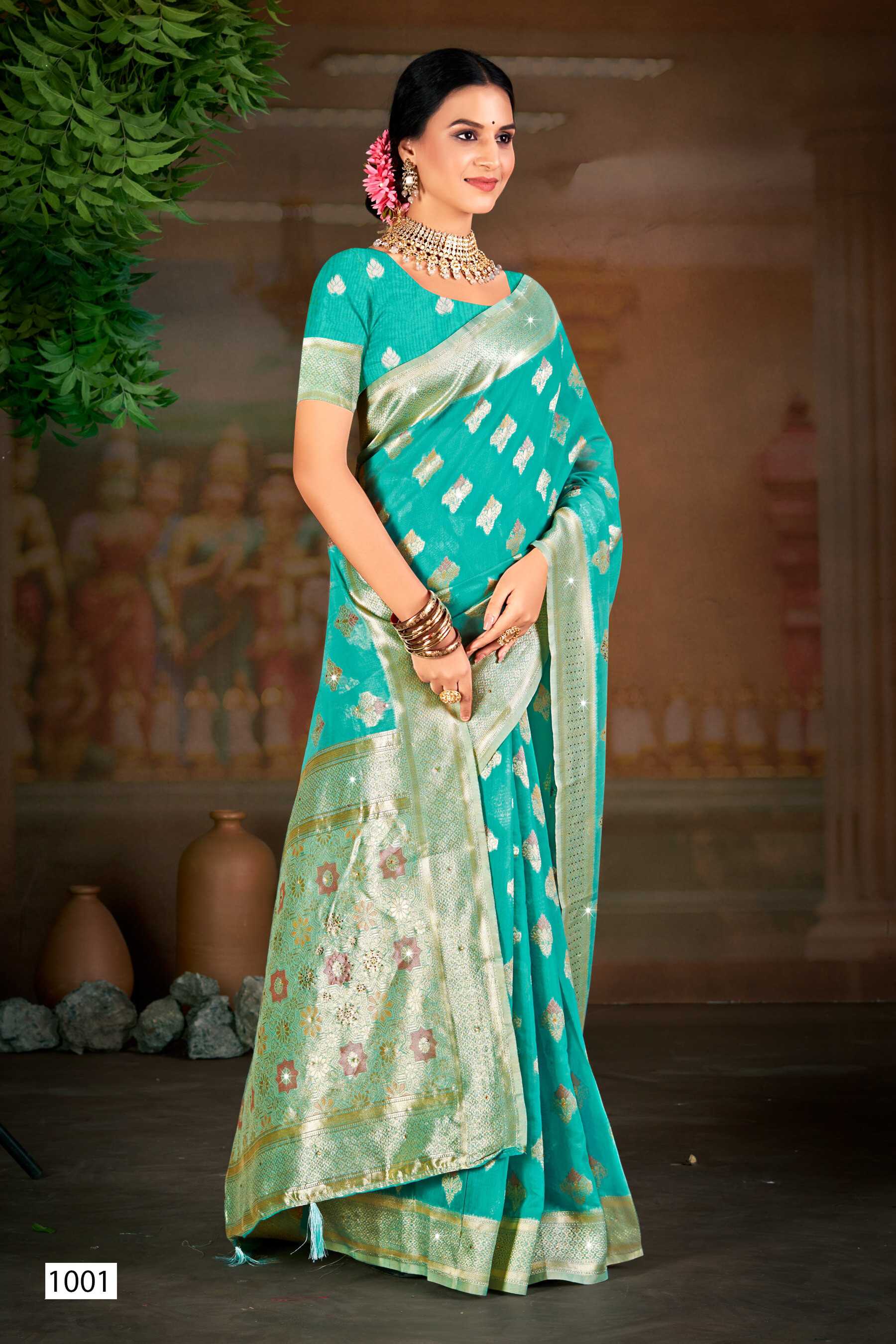 Saroj Saree Sakshi Swarovski vol.4 Soft Linen Cotton Mina with heavy Swarovski Work Rate- ₹625/- |