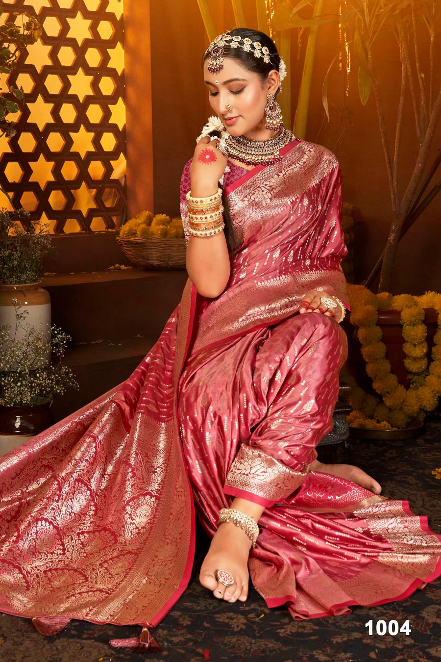 Sanwaree satin saroski vol.5 Pure Sattin Silk With Swarovski Rich Pallu Saree Rate-₹1565/- |