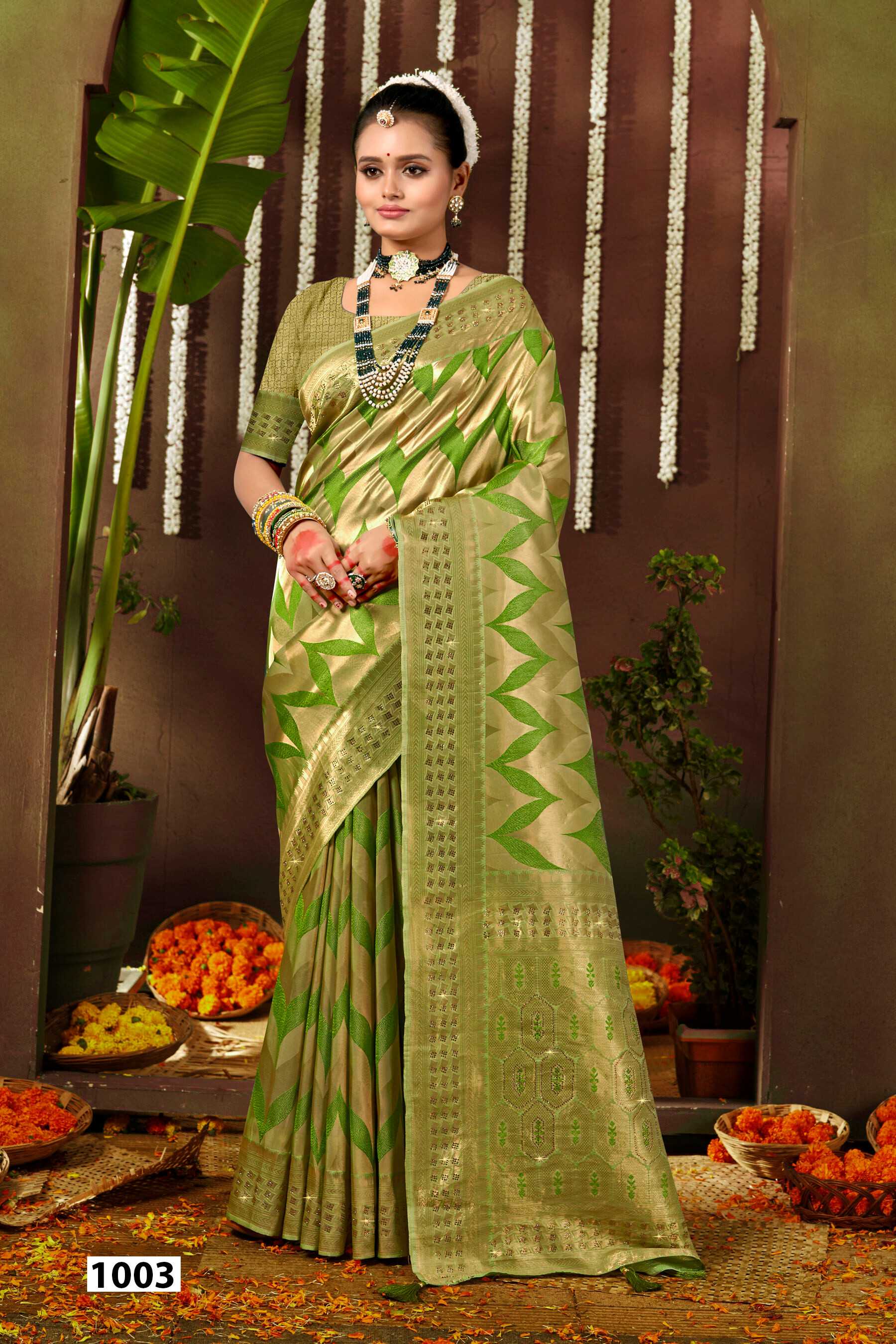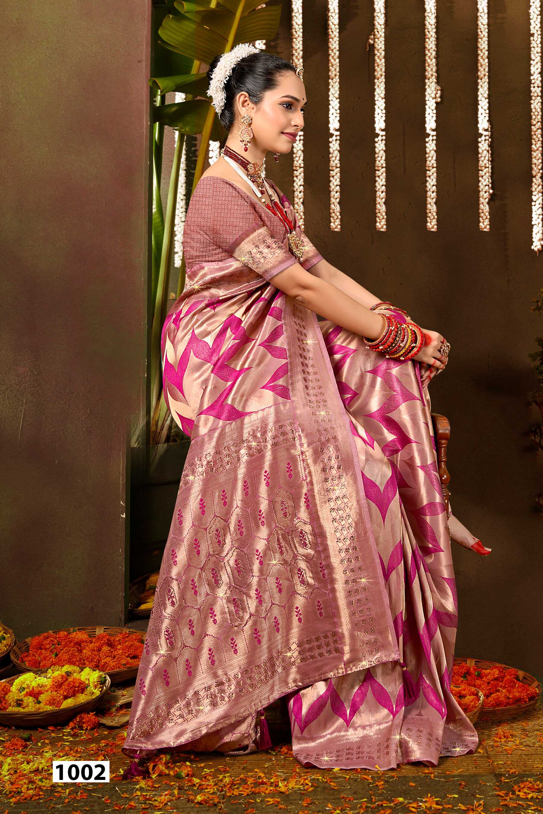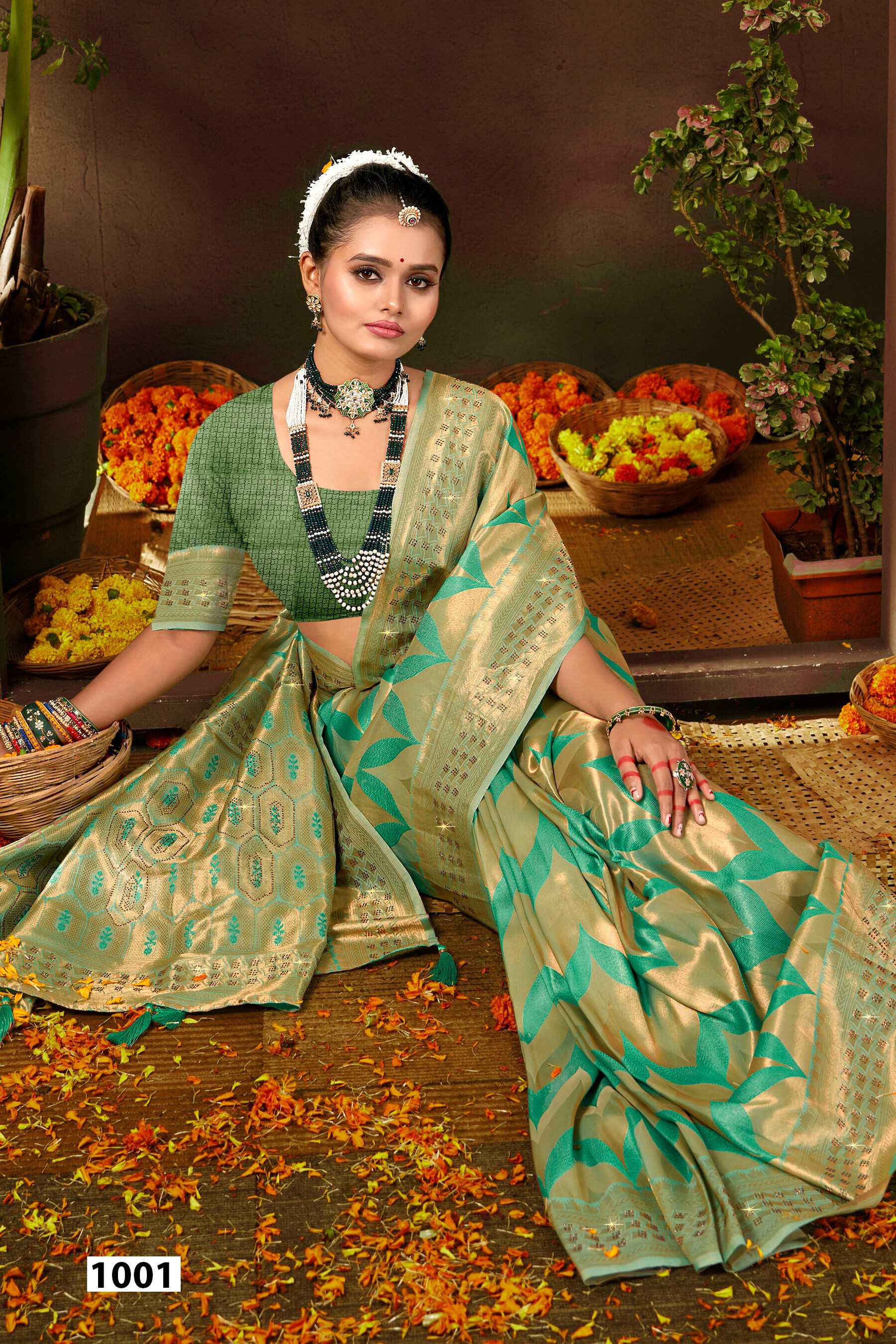 Saroj Shahzeen tissue swarovski vol.1 Satin tissue silk saree
