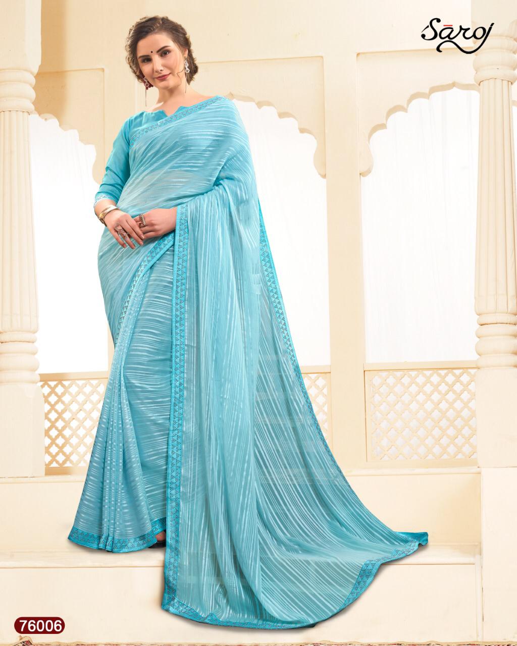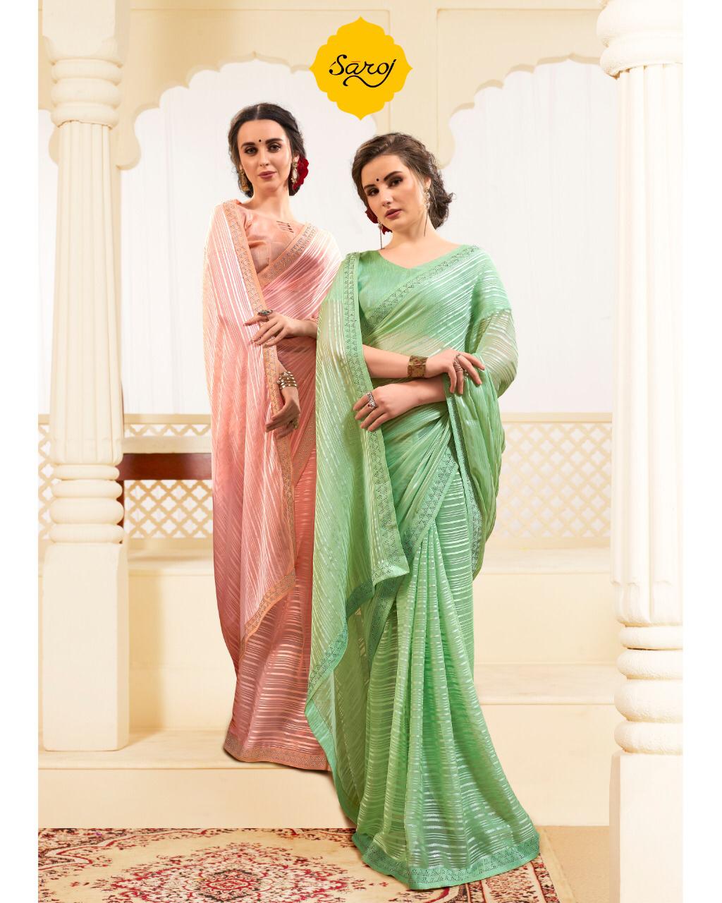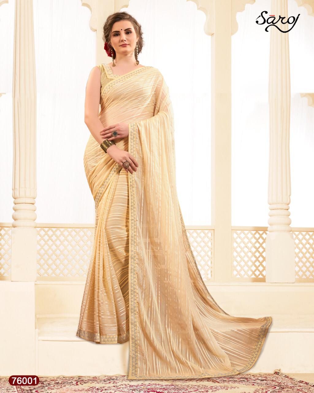 Saroj Super Line Georgette Satin Jari Line Fancy Saree Online Supplier