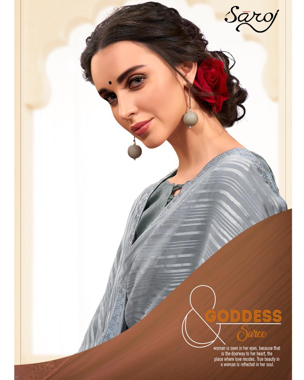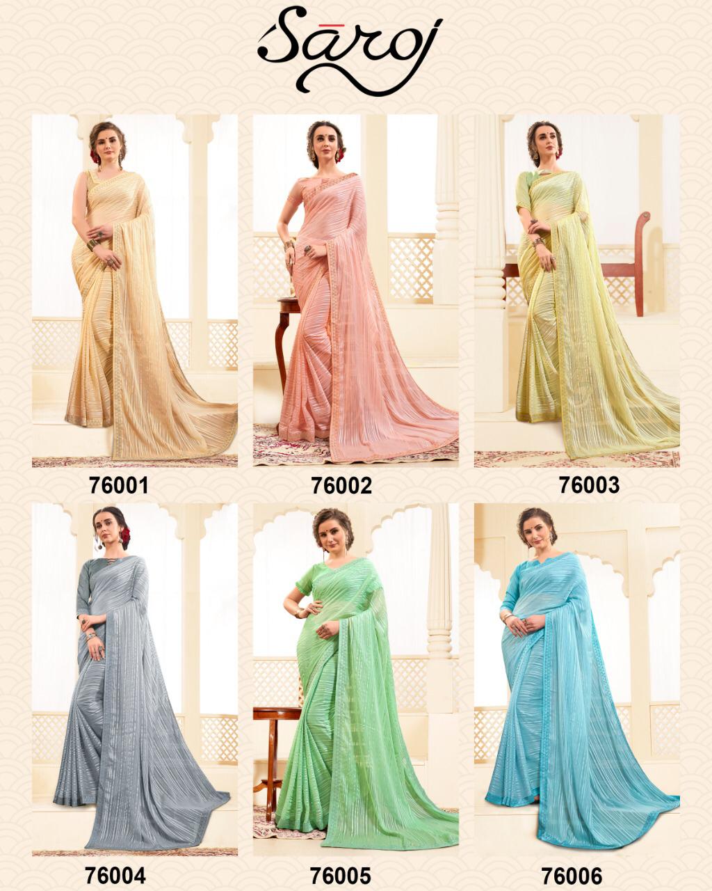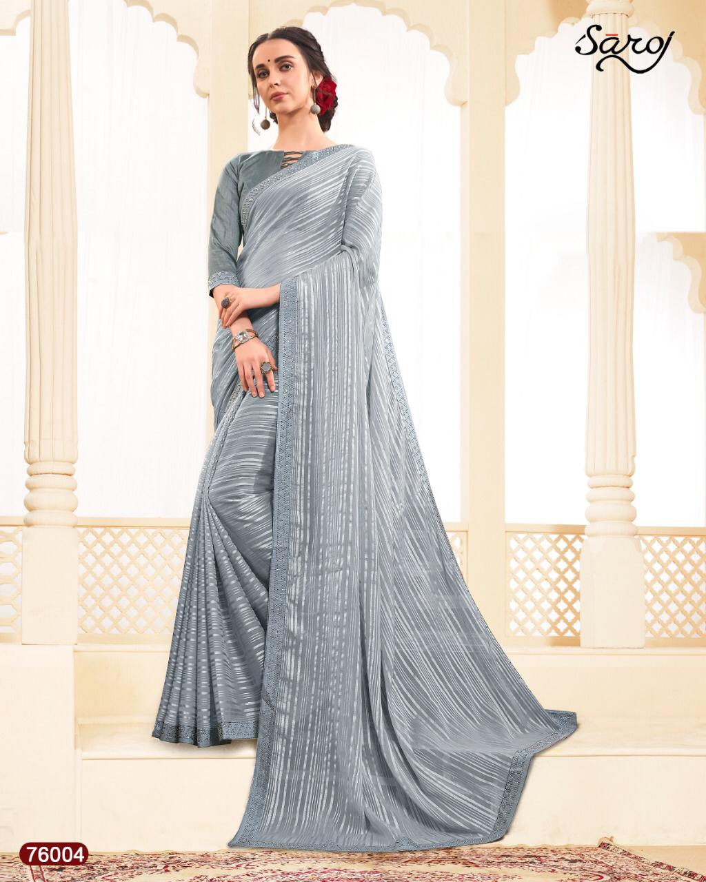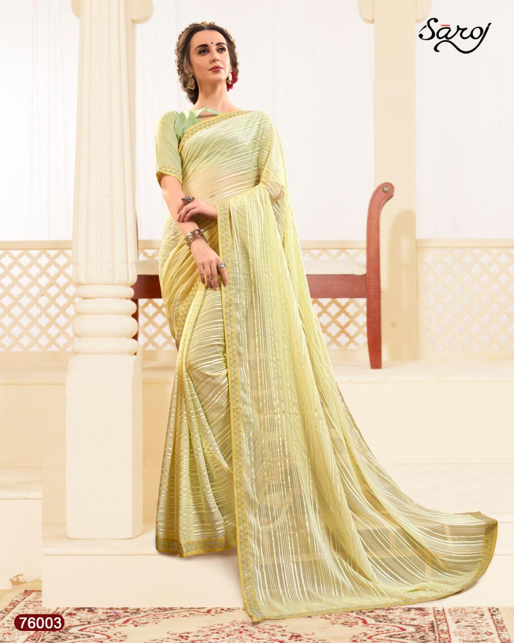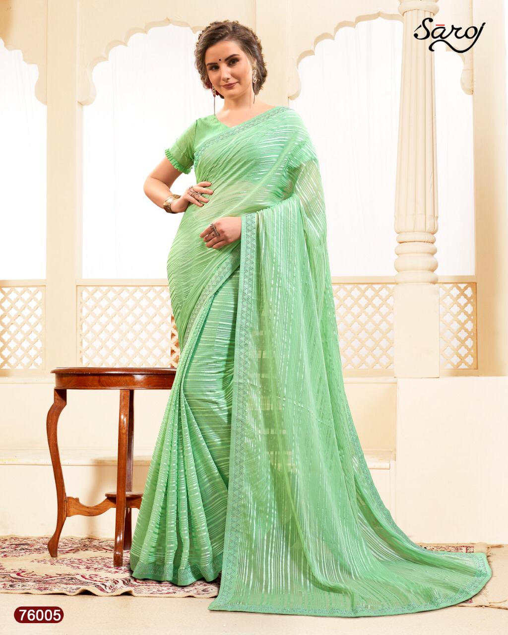 SAROJ Super line (Rs.940) Fabric: New Fabric Georgette and satin with jari line. Blouse: Banglori Silk. 6 Designs |