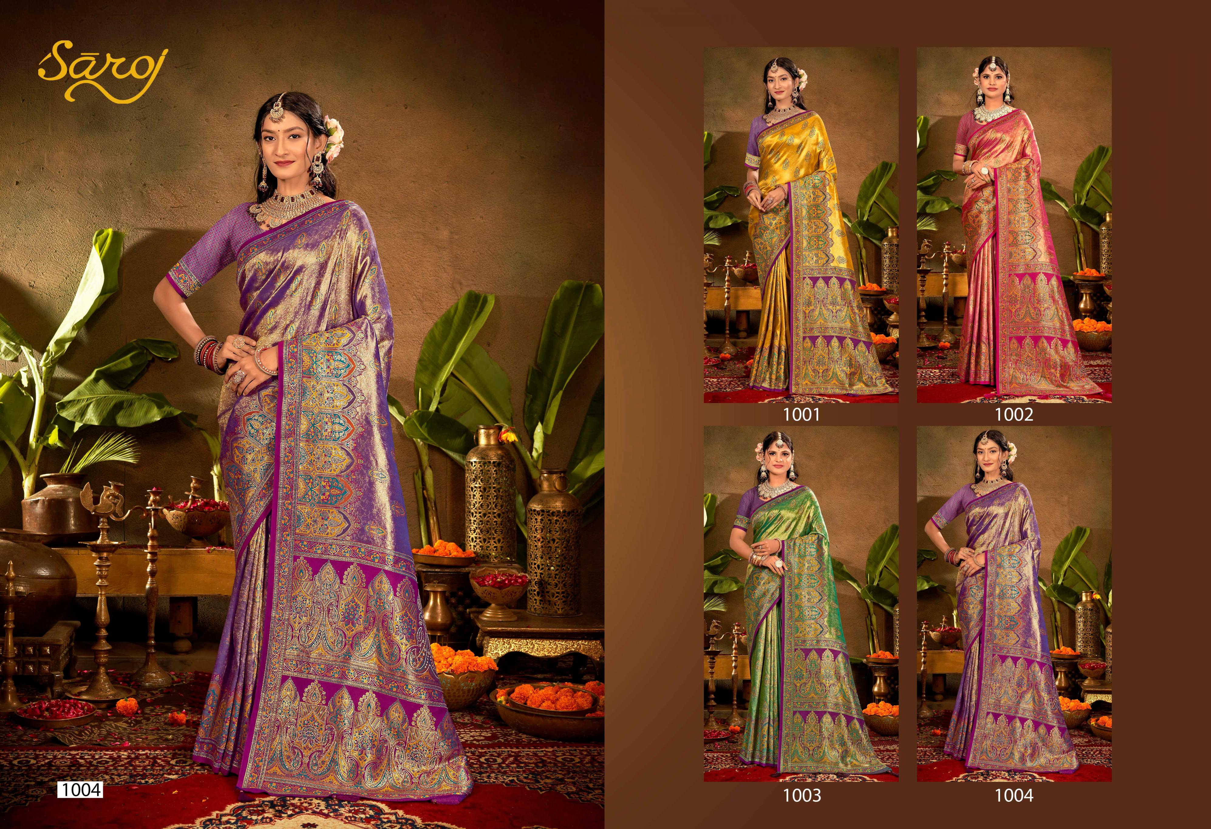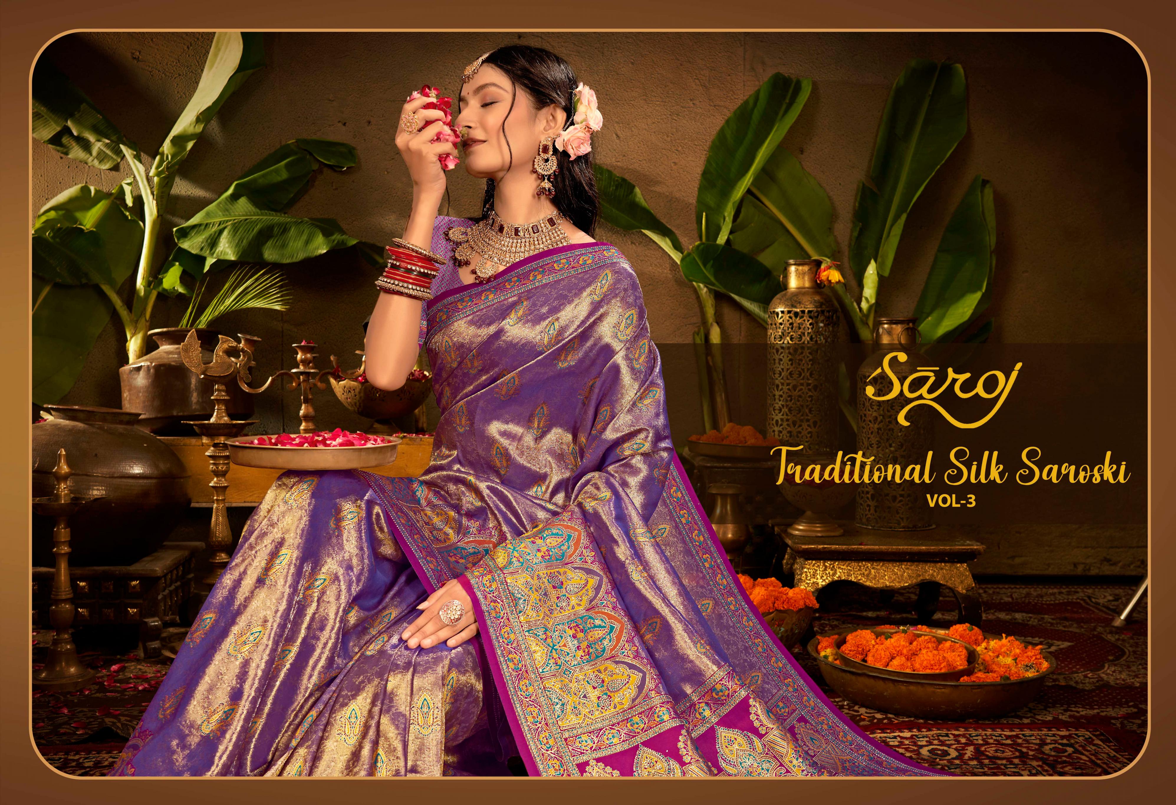 Traditional Silk Saroski vol.3 Pure Tissue Silk Rich Pallu Saree Bright Matching Jharkan Work Position Print Designing Rate:₹2085 |
