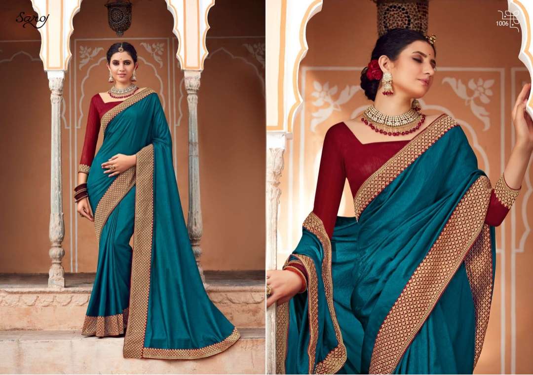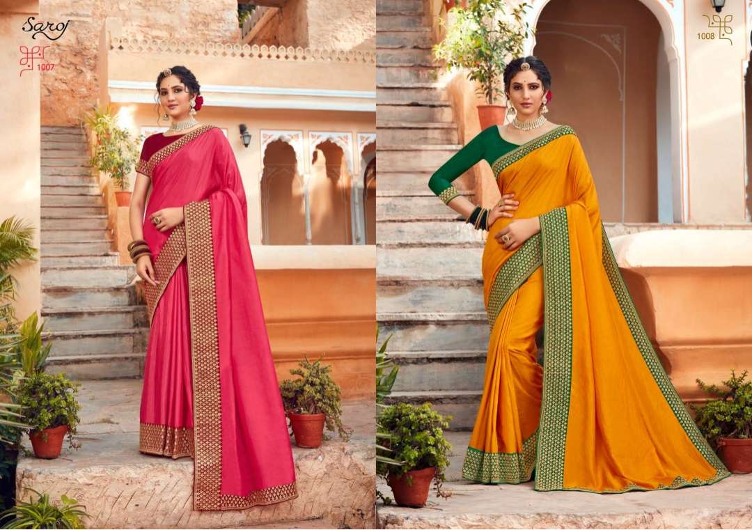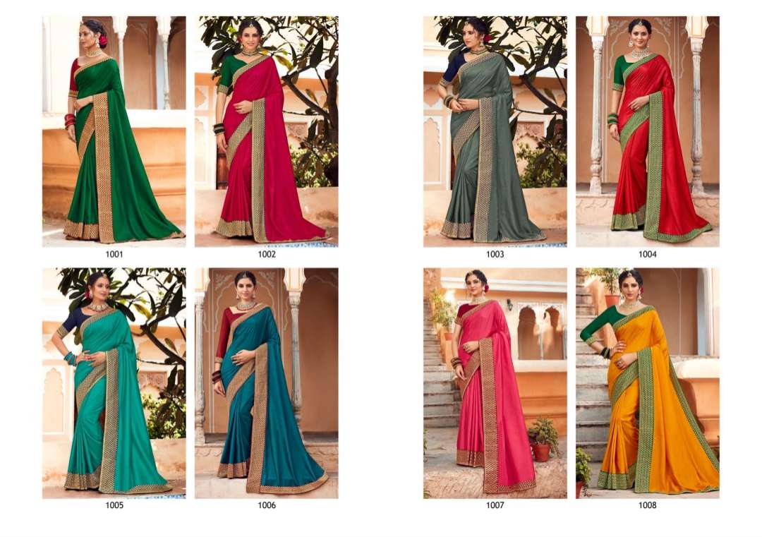 Saroj trinetra series 1001 to 1008 soft vichitra silk with heavy border sarees collection
