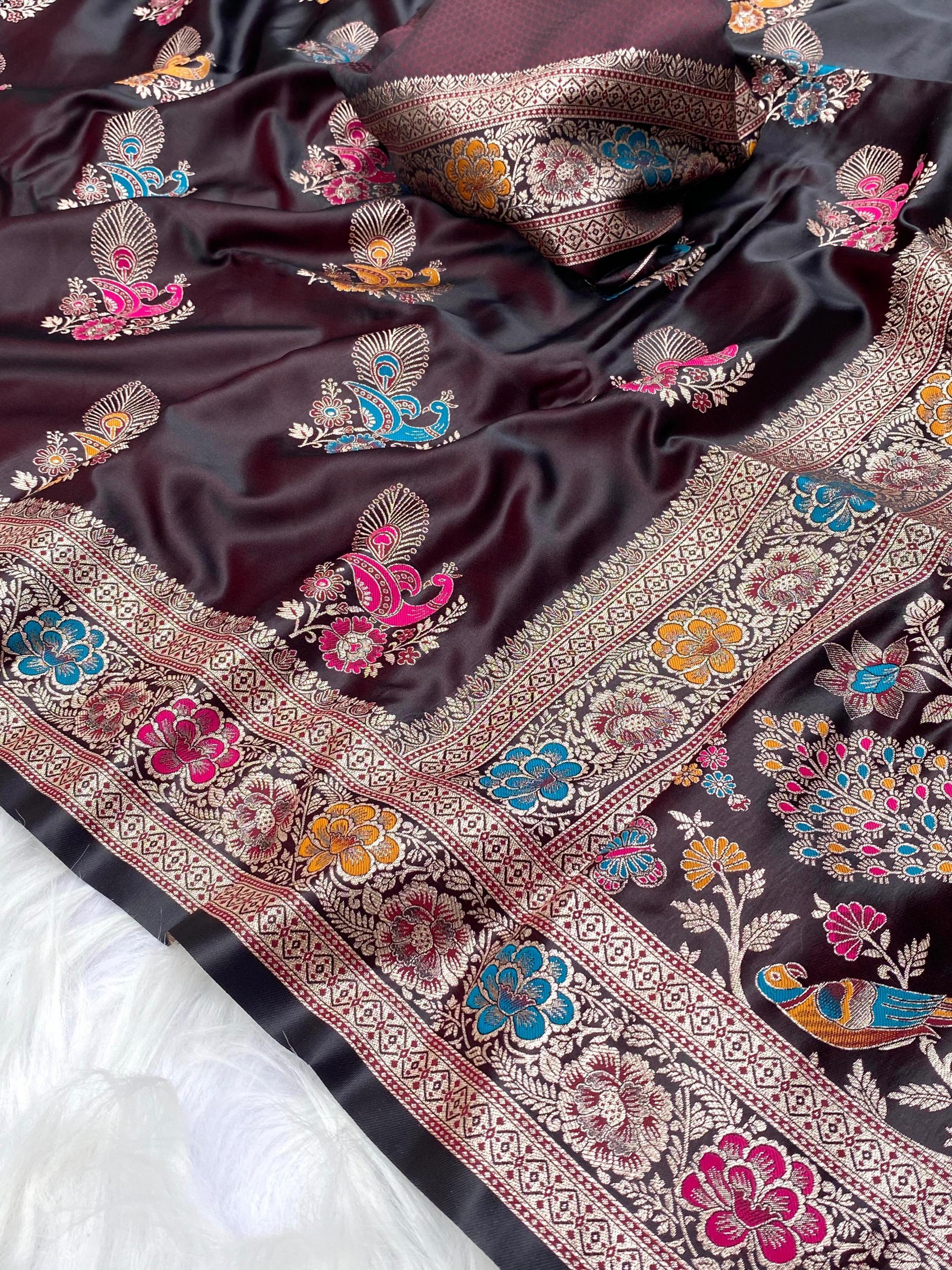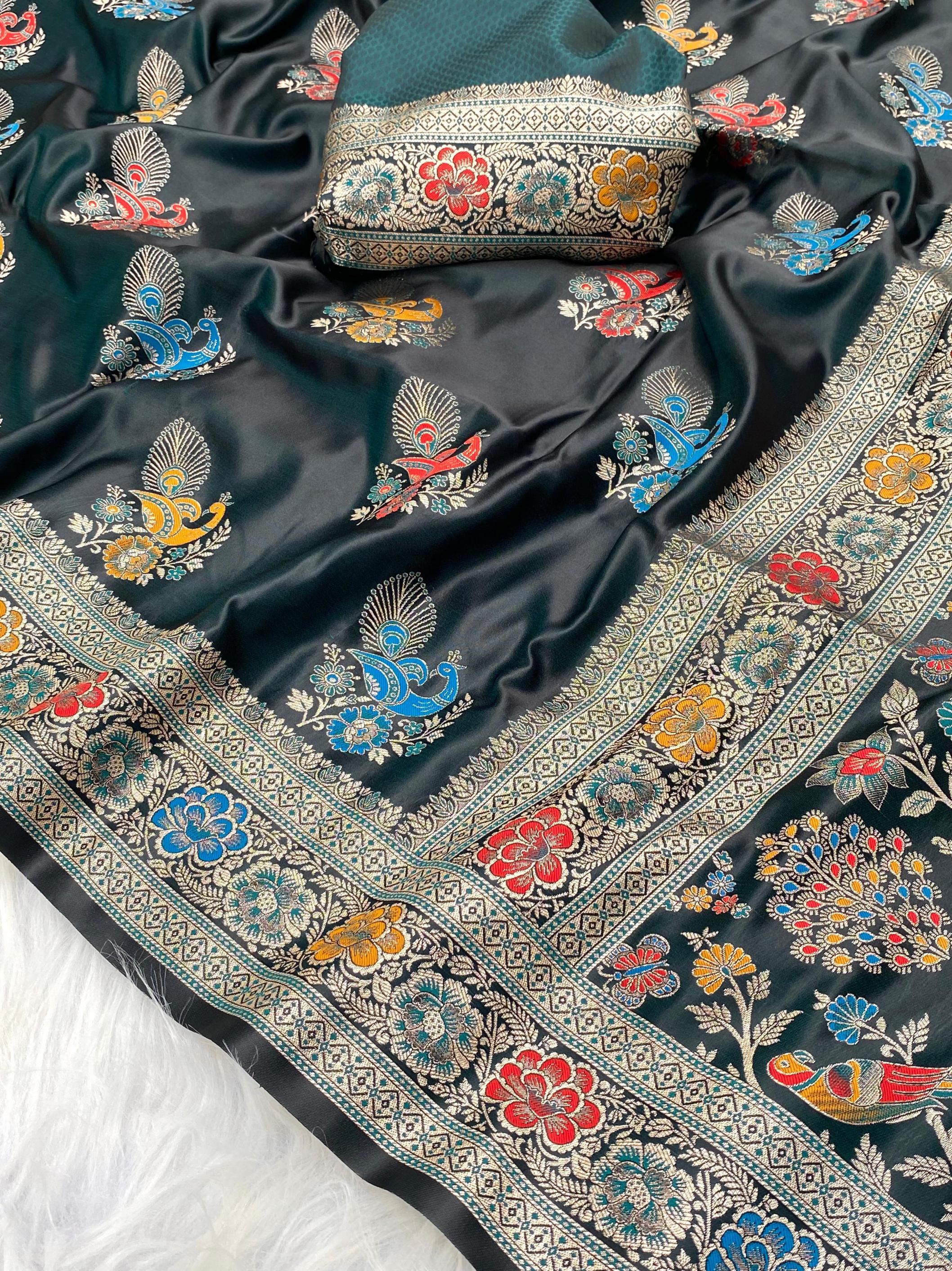 satin mor mushro weaving hit design saree for womens online