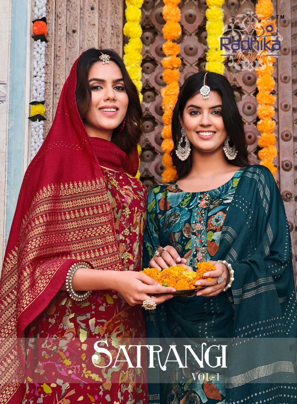 satrangi vol 1 by radhika lifestyle readymade kurti bottom dupatta diwali special collection