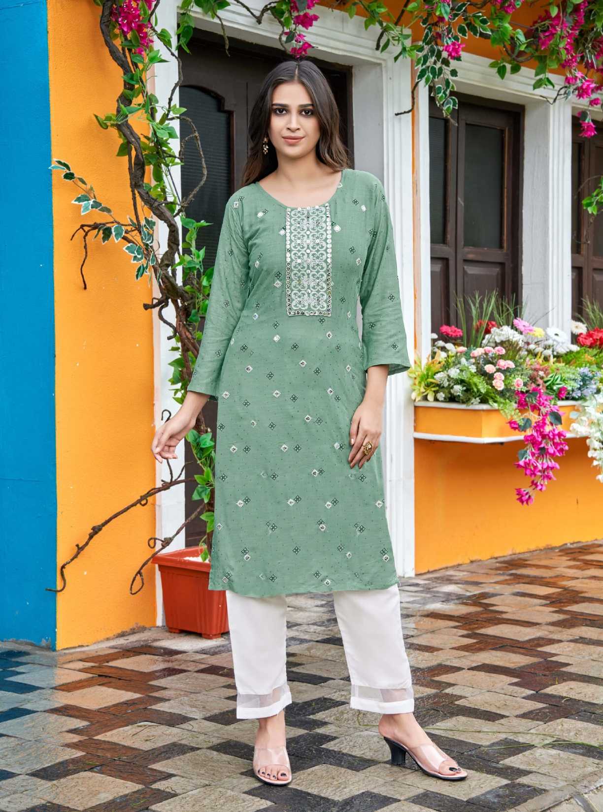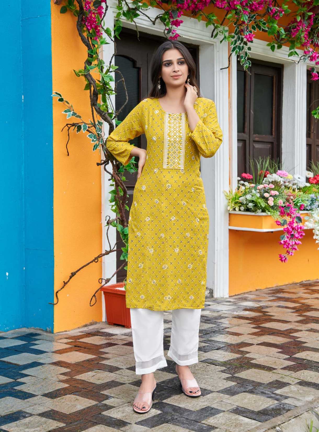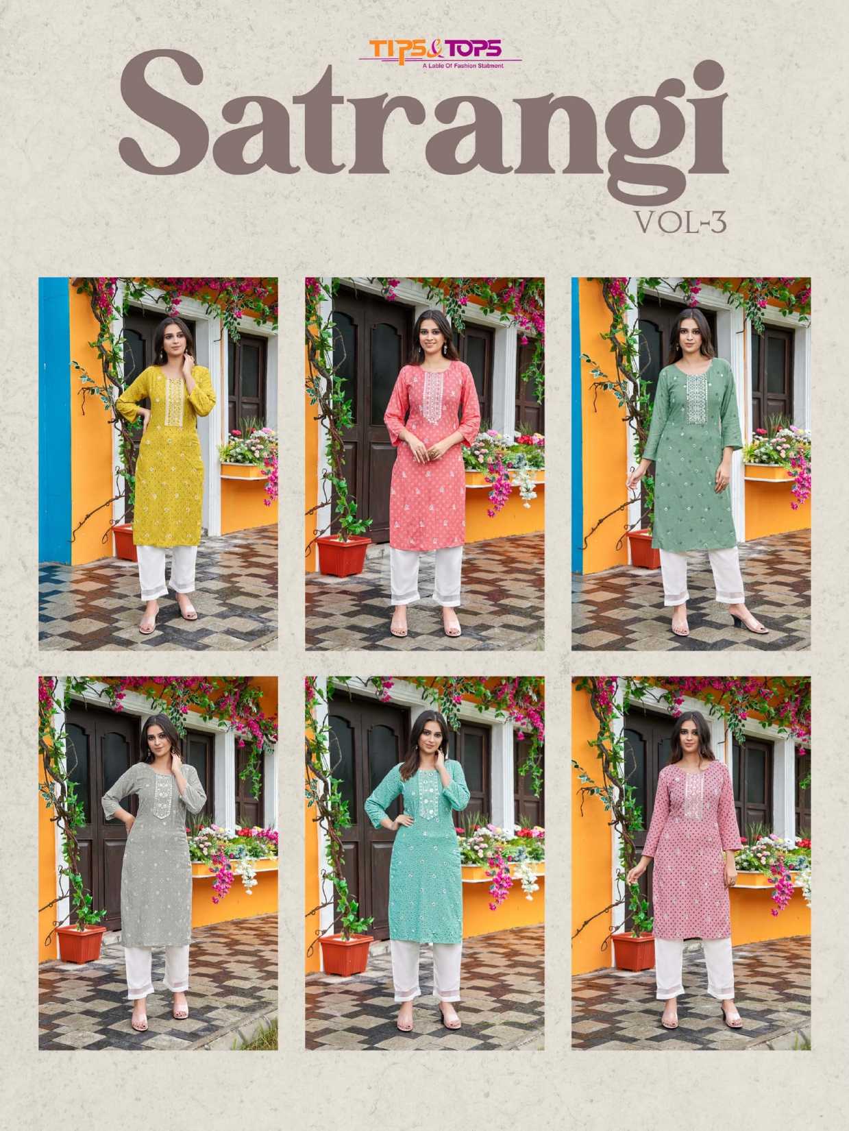 Namaste 👏🏻 TIPS & TOPS Catalouge : 💃 SATRANGI Vol 03 💃 Party Wear Heavy Kurti With Pant Fabrics : Fancy Reyon Slub Print Rate : 525 + GST 5%