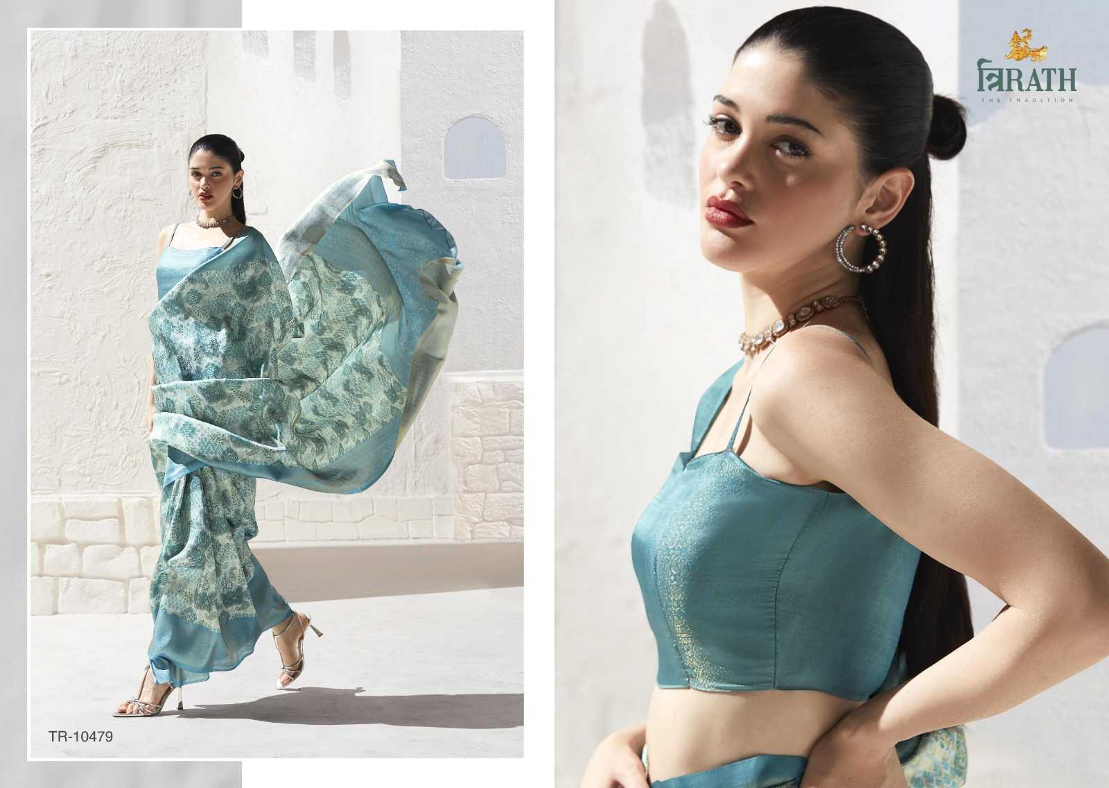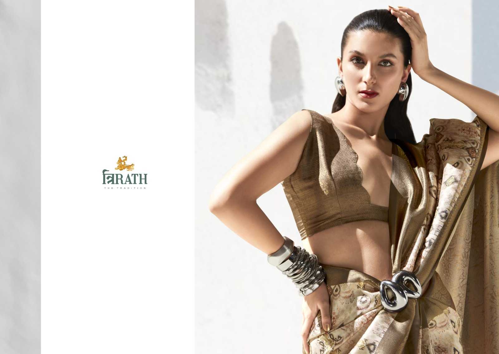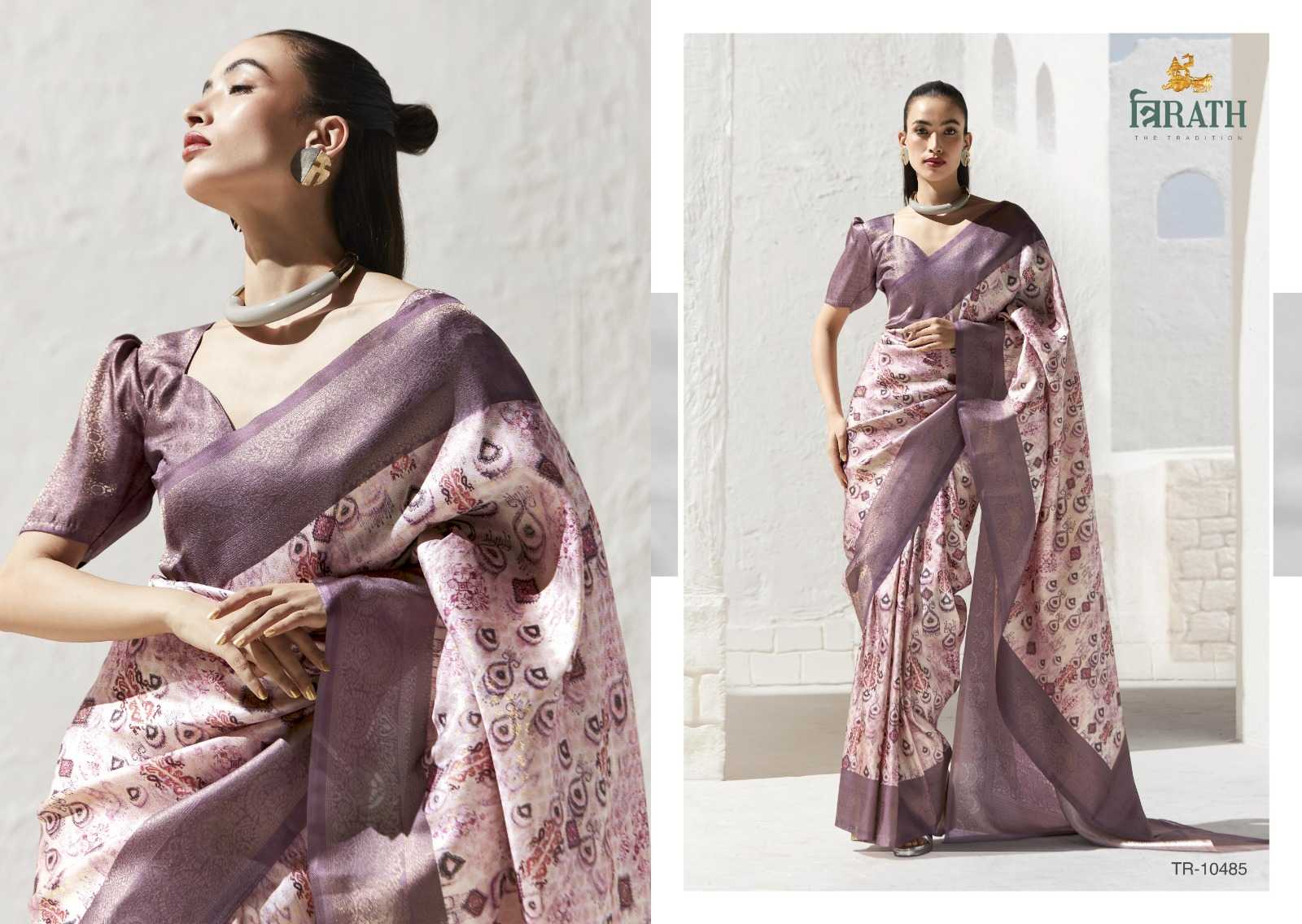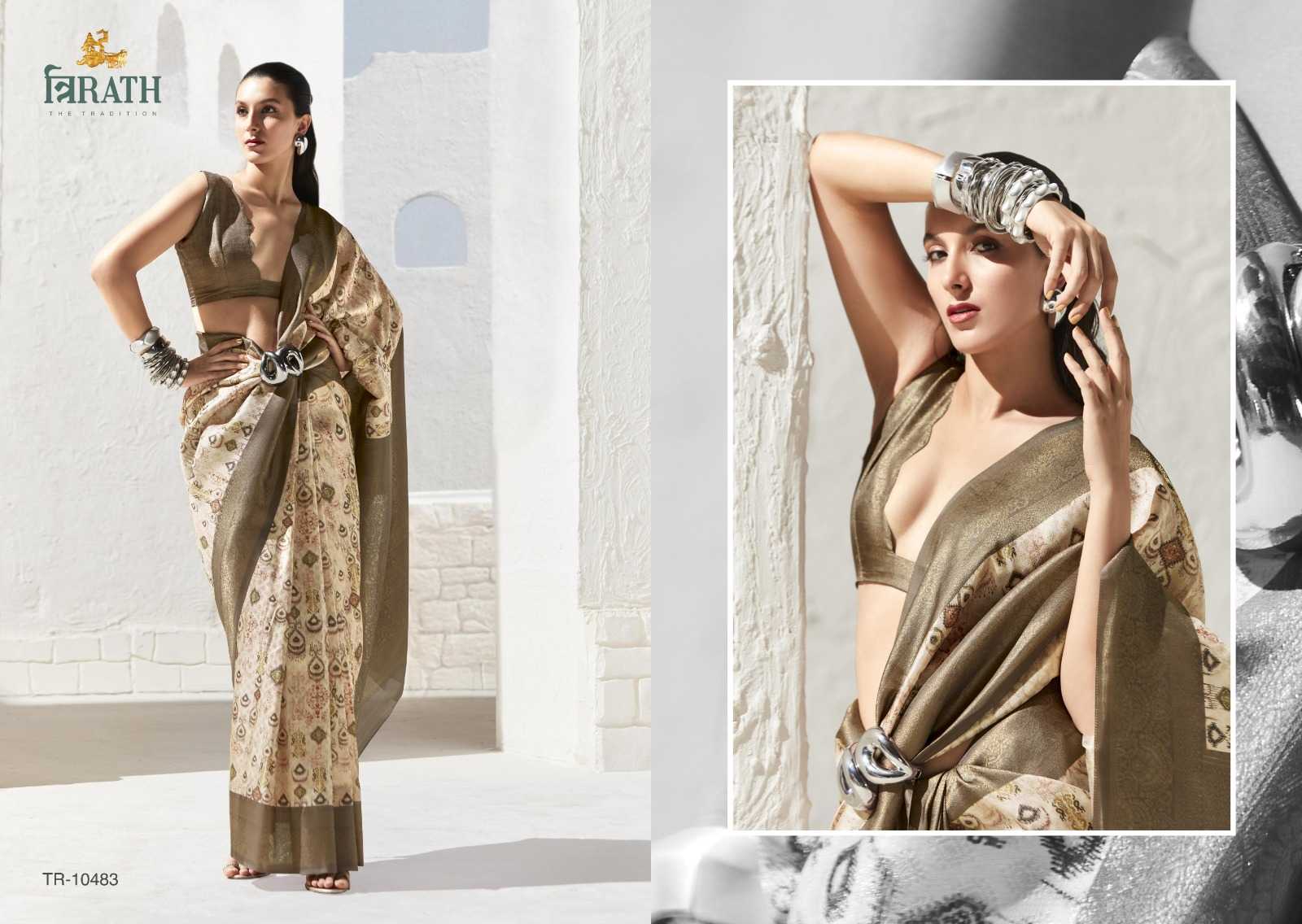 BRAND :TRIRATH CATALOGUE NAME:- SATVIK-2 SERIES :10479 TO 10486 FABRIC DETAILS:-︎ ART SILK WITH DIGITAL PRINTED ZARI BORDER SAREE WITH CONTRAST BORDER BLOUSE : ZARI ART SILK BLOUSE RATE:-995/- |