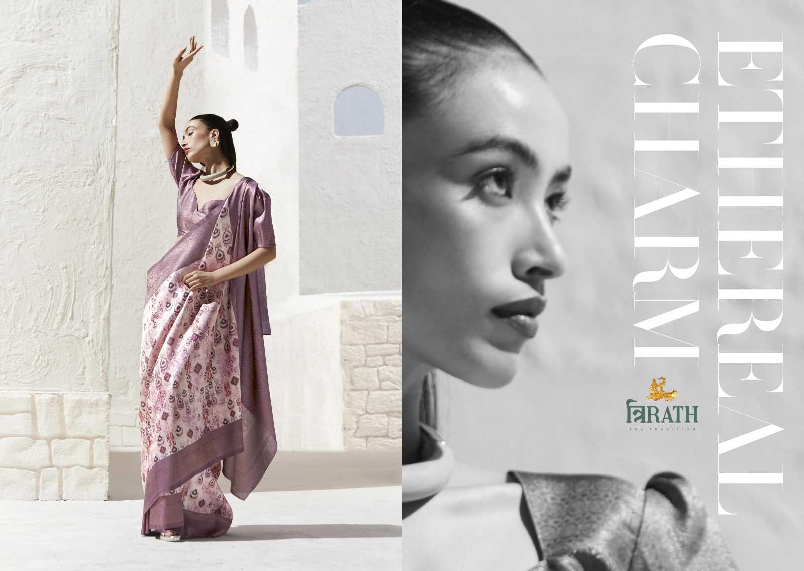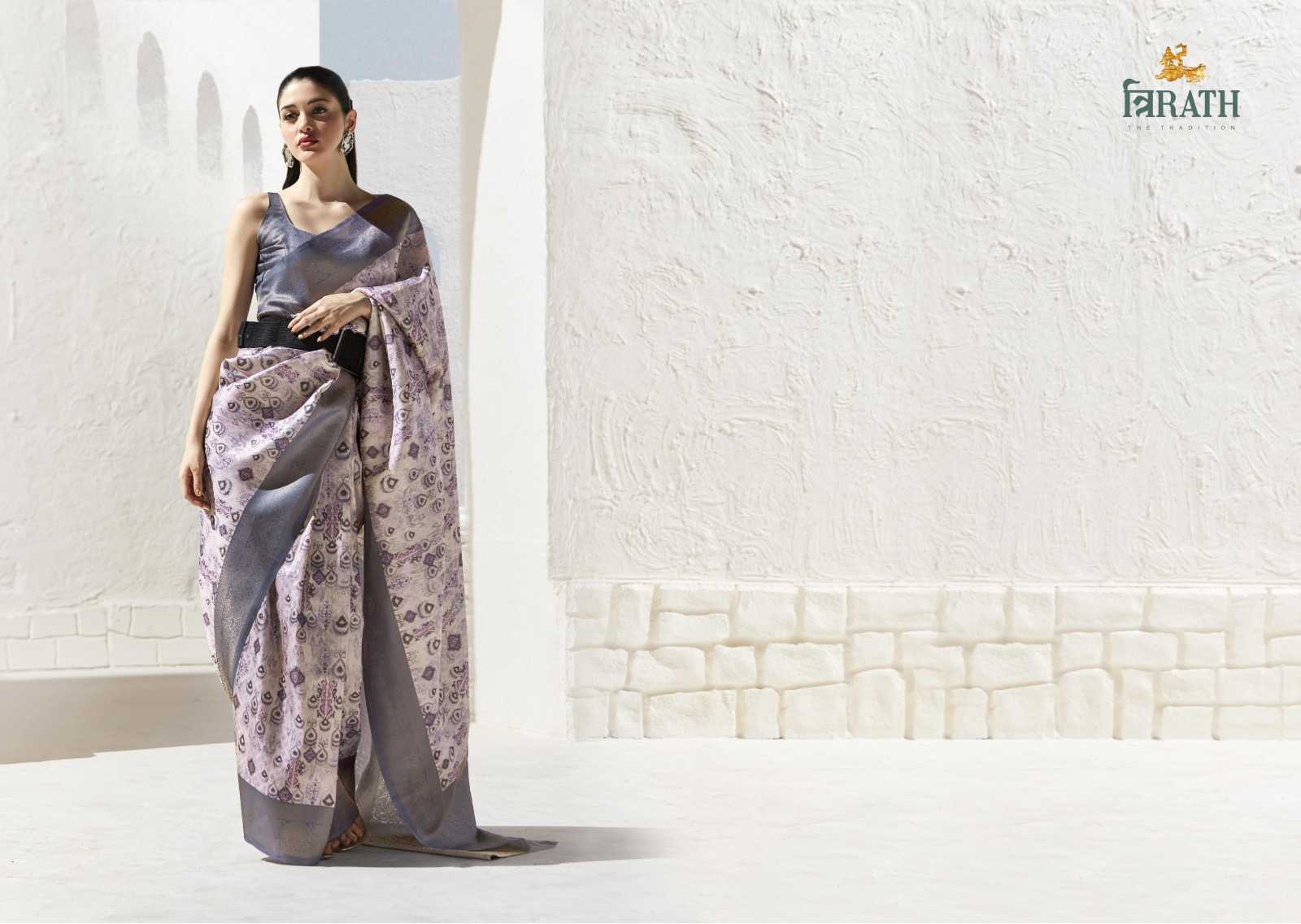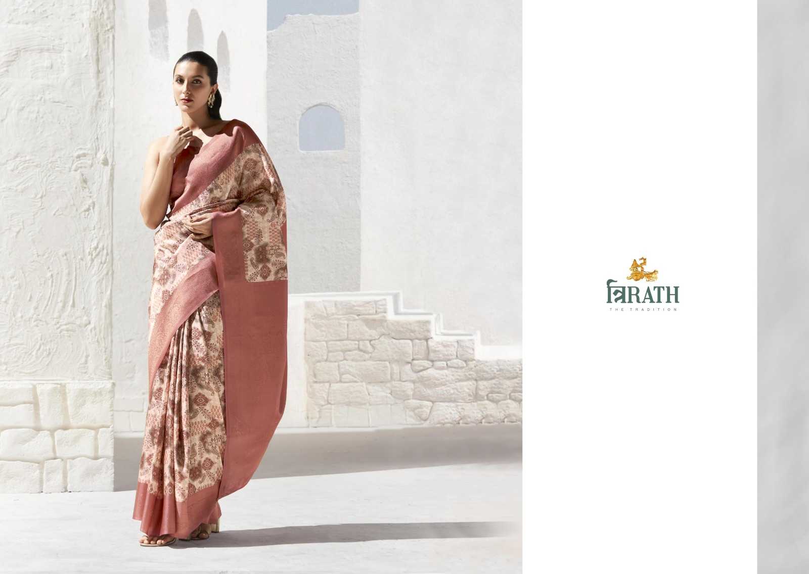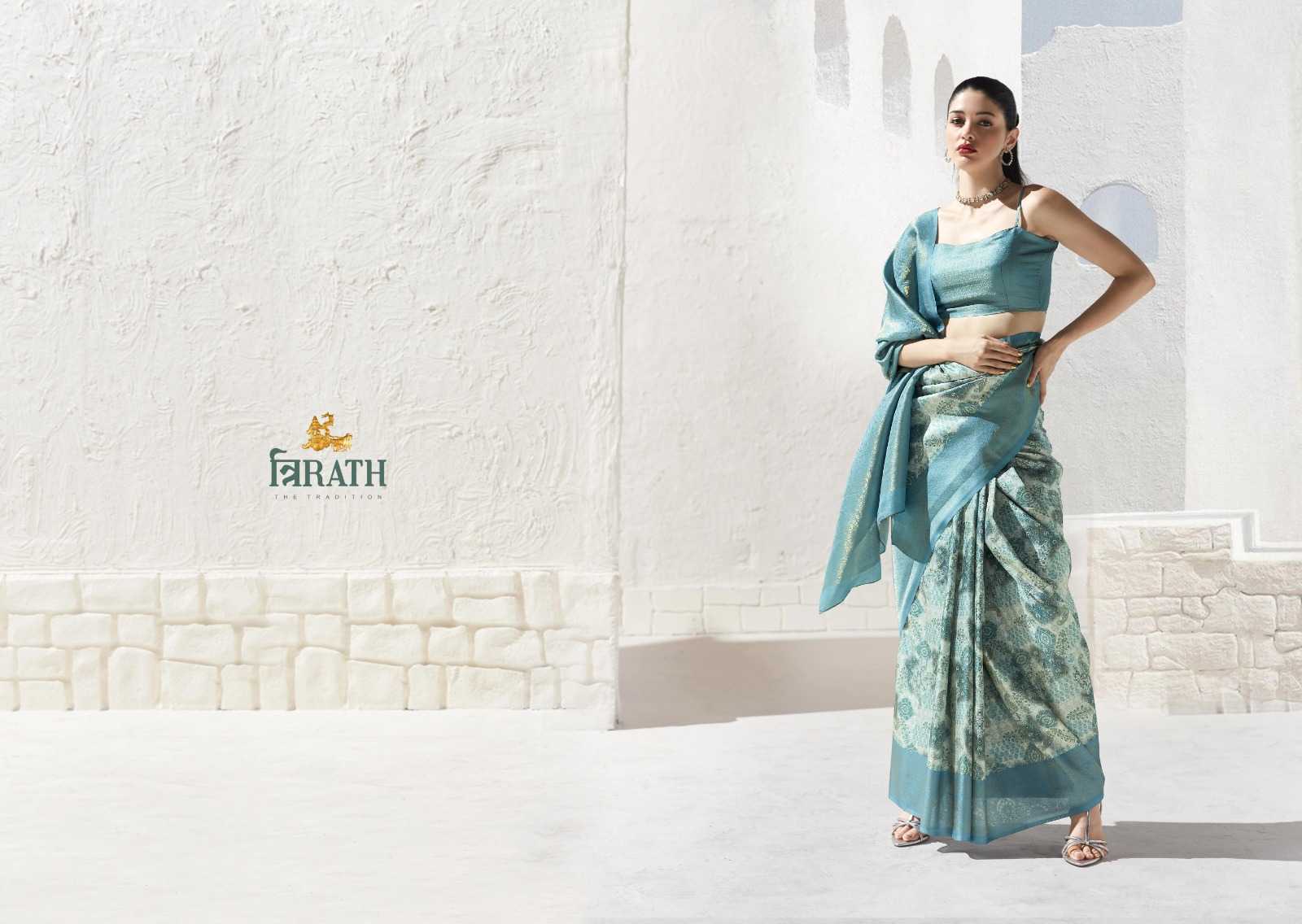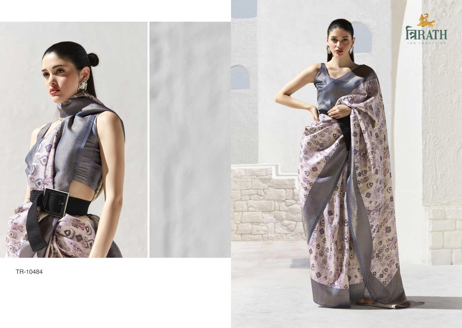BRAND :TRIRATH CATALOGUE NAME:- SATVIK-2 SERIES :10479 TO 10486 FABRIC DETAILS:-︎ ART SILK WITH DIGITAL PRINTED ZARI BORDER SAREE WITH CONTRAST BORDER BLOUSE : ZARI ART SILK BLOUSE RATE:-995/- |