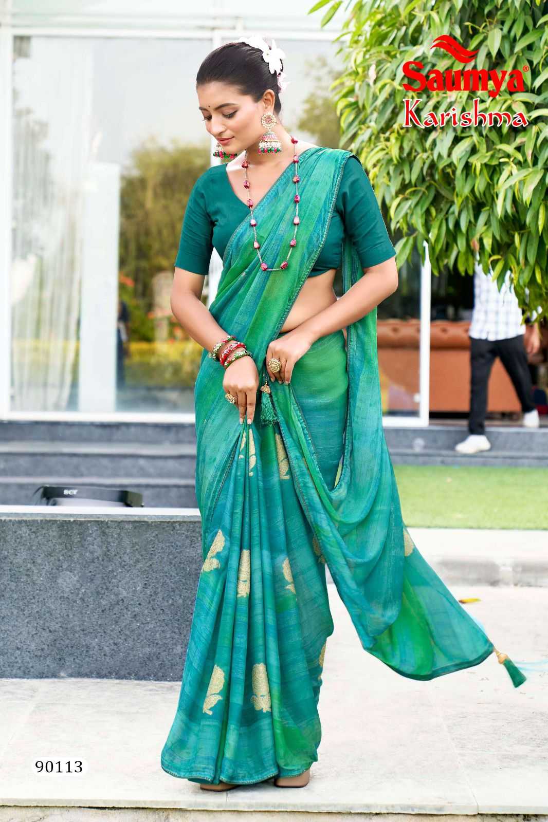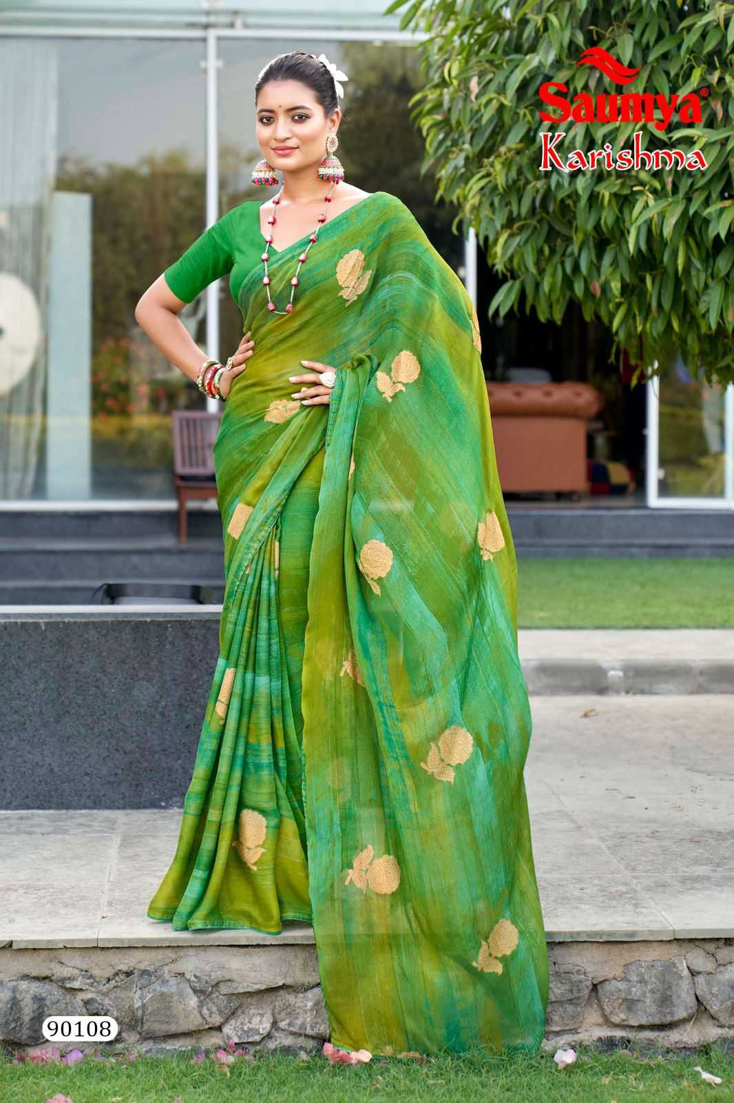 saumya karishma dull moss shibhori print regular wear fancy saree supplier