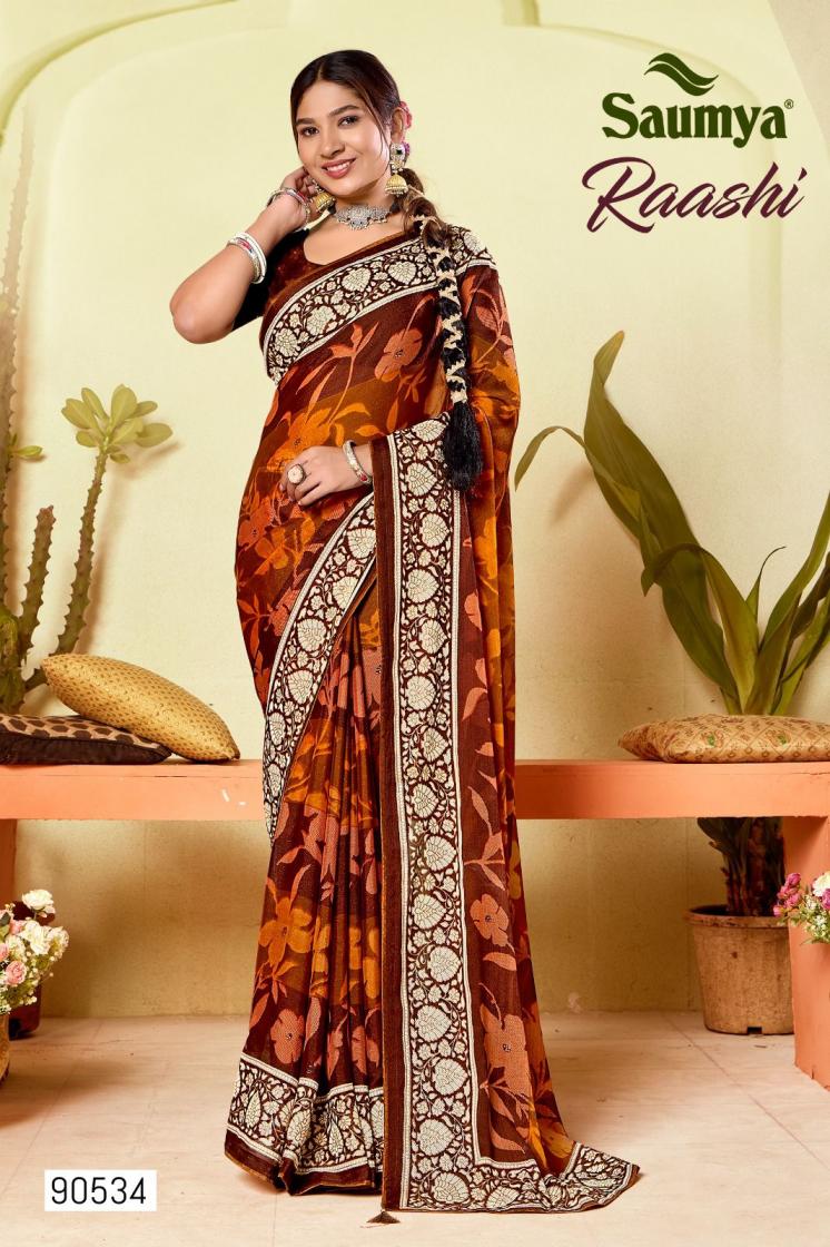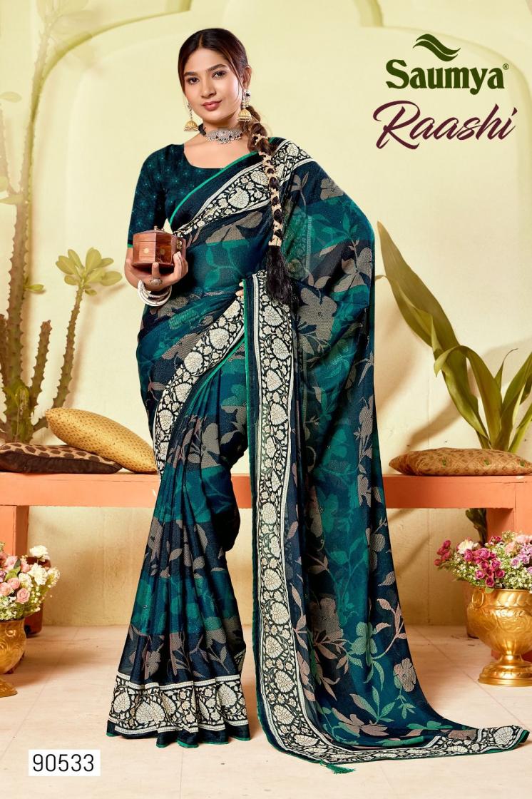 saumya launch raashi sparkle georgette pretty look saree supplier