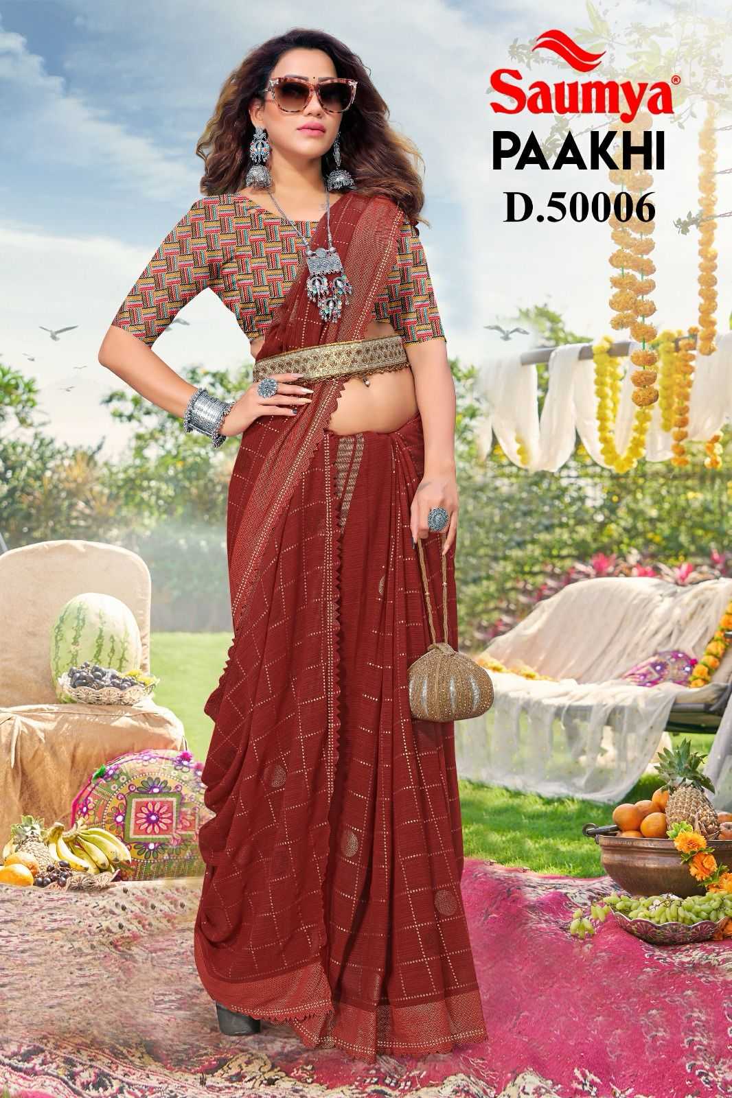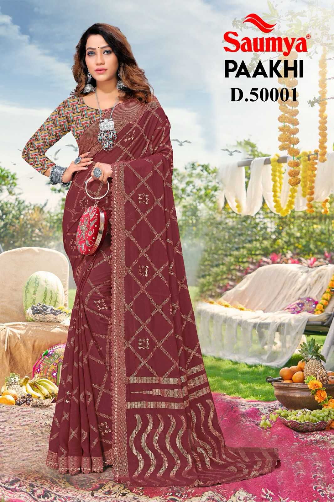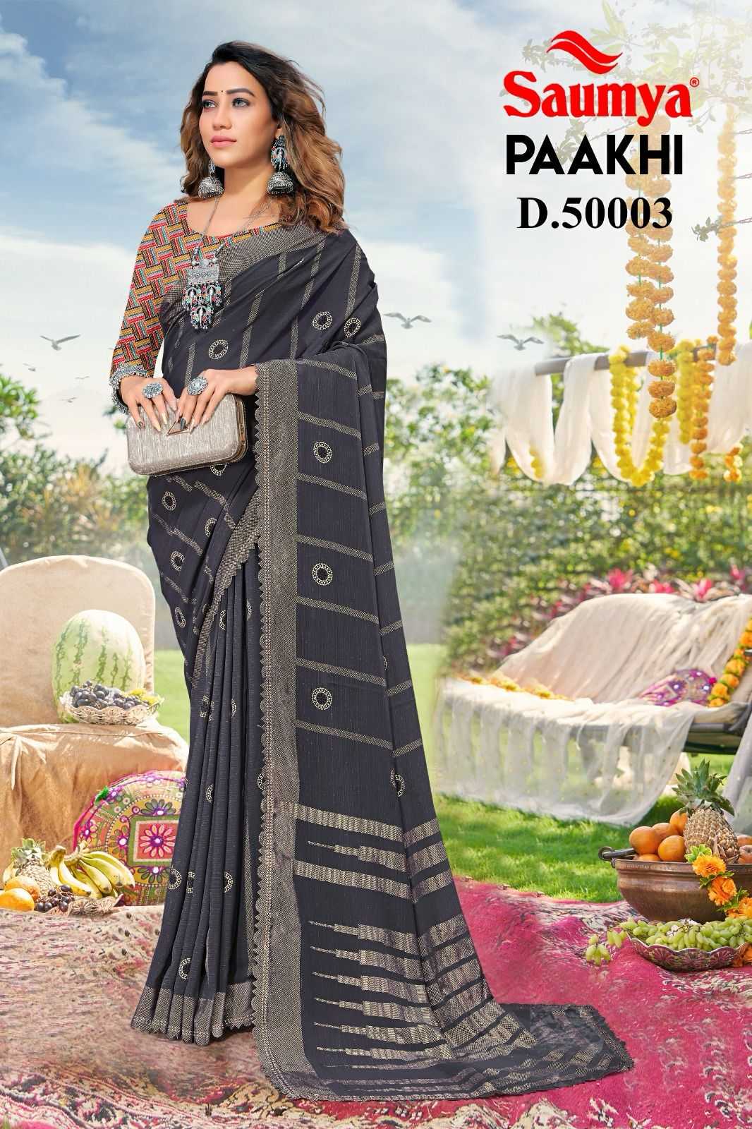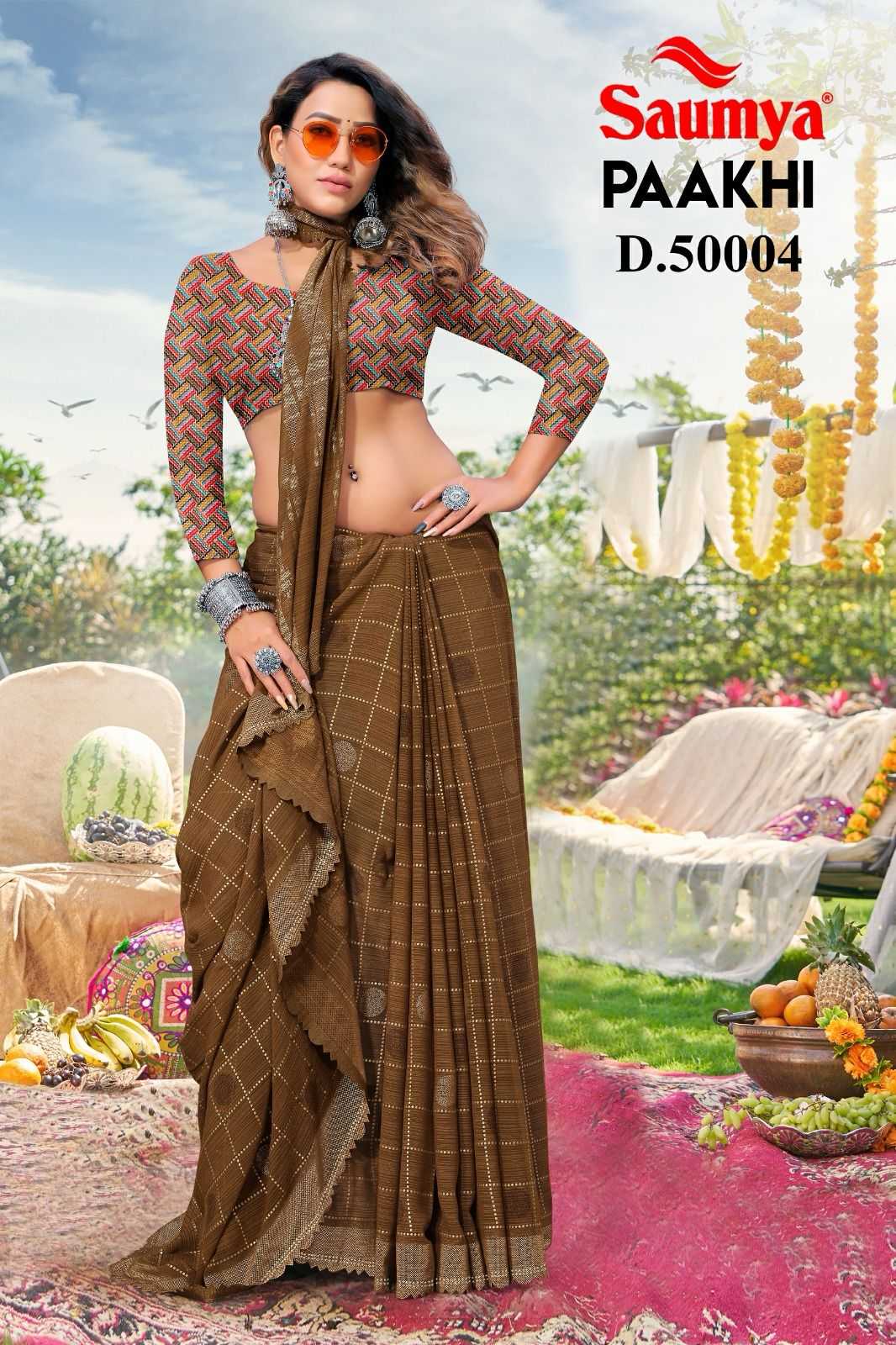 saumya present paakhi fancy foil print saree with digital print blouse collection