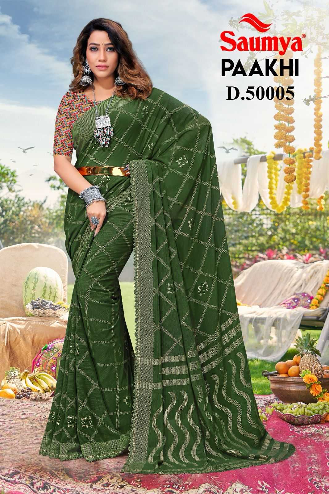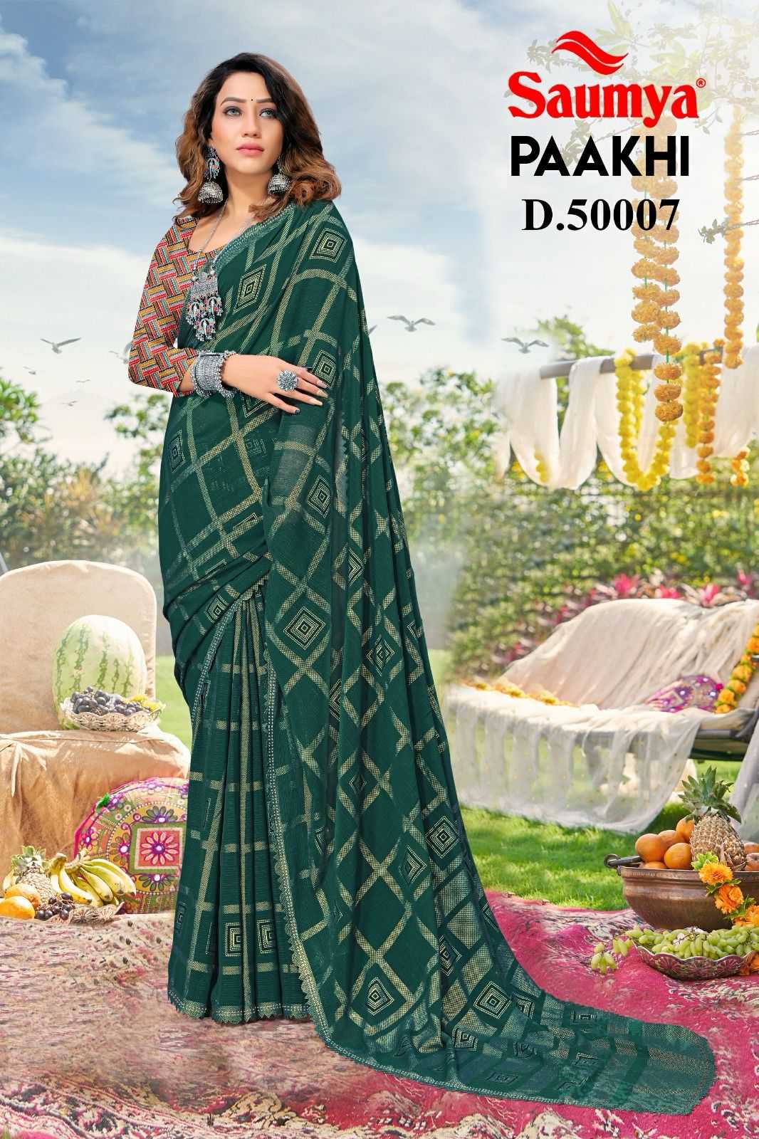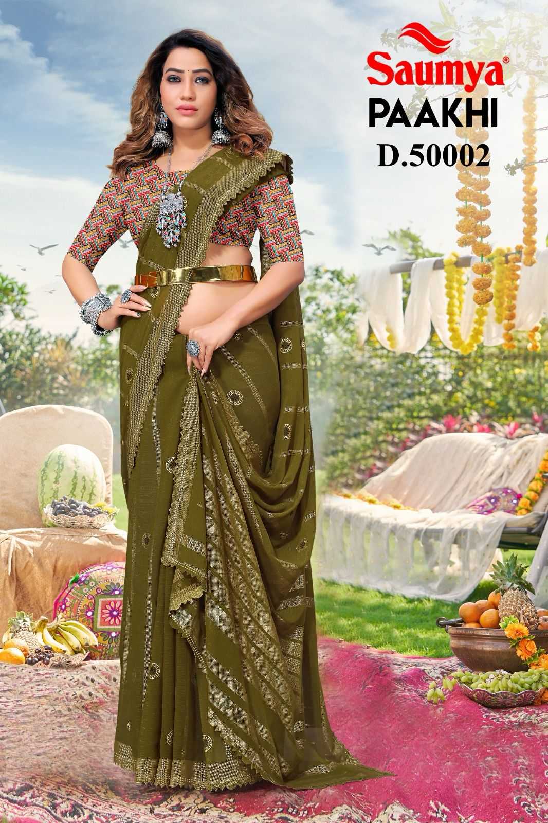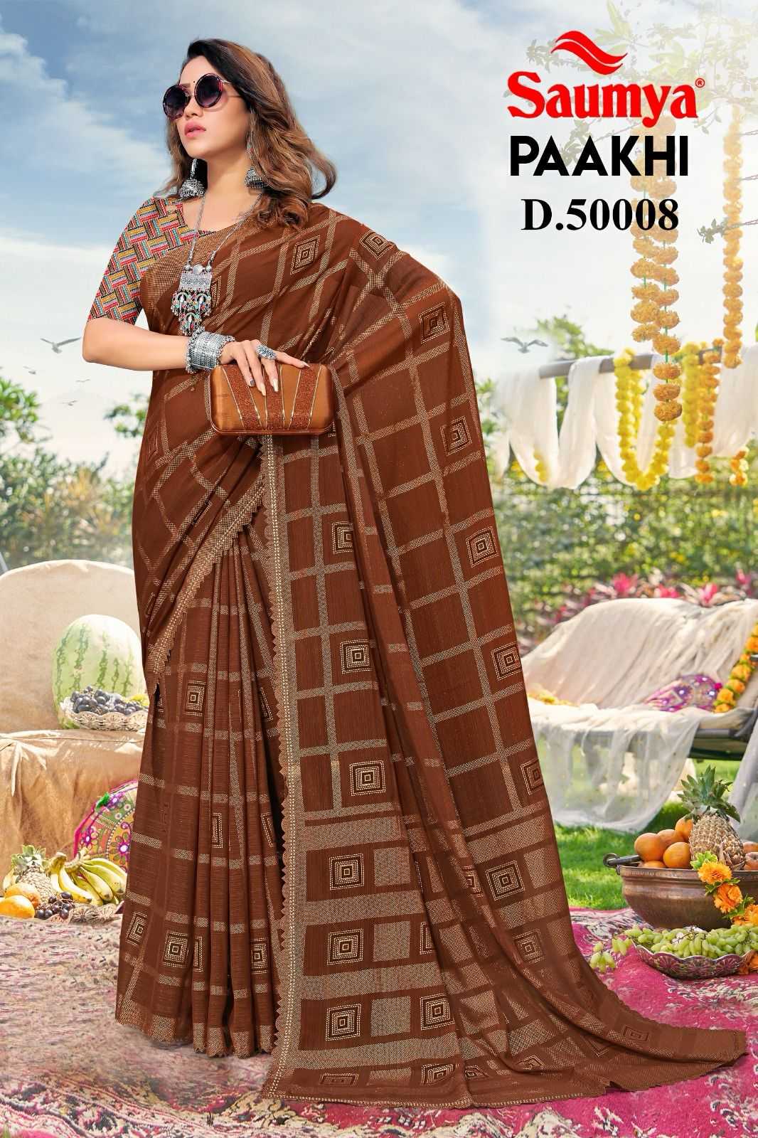 saumya present paakhi fancy foil print saree with digital print blouse collection