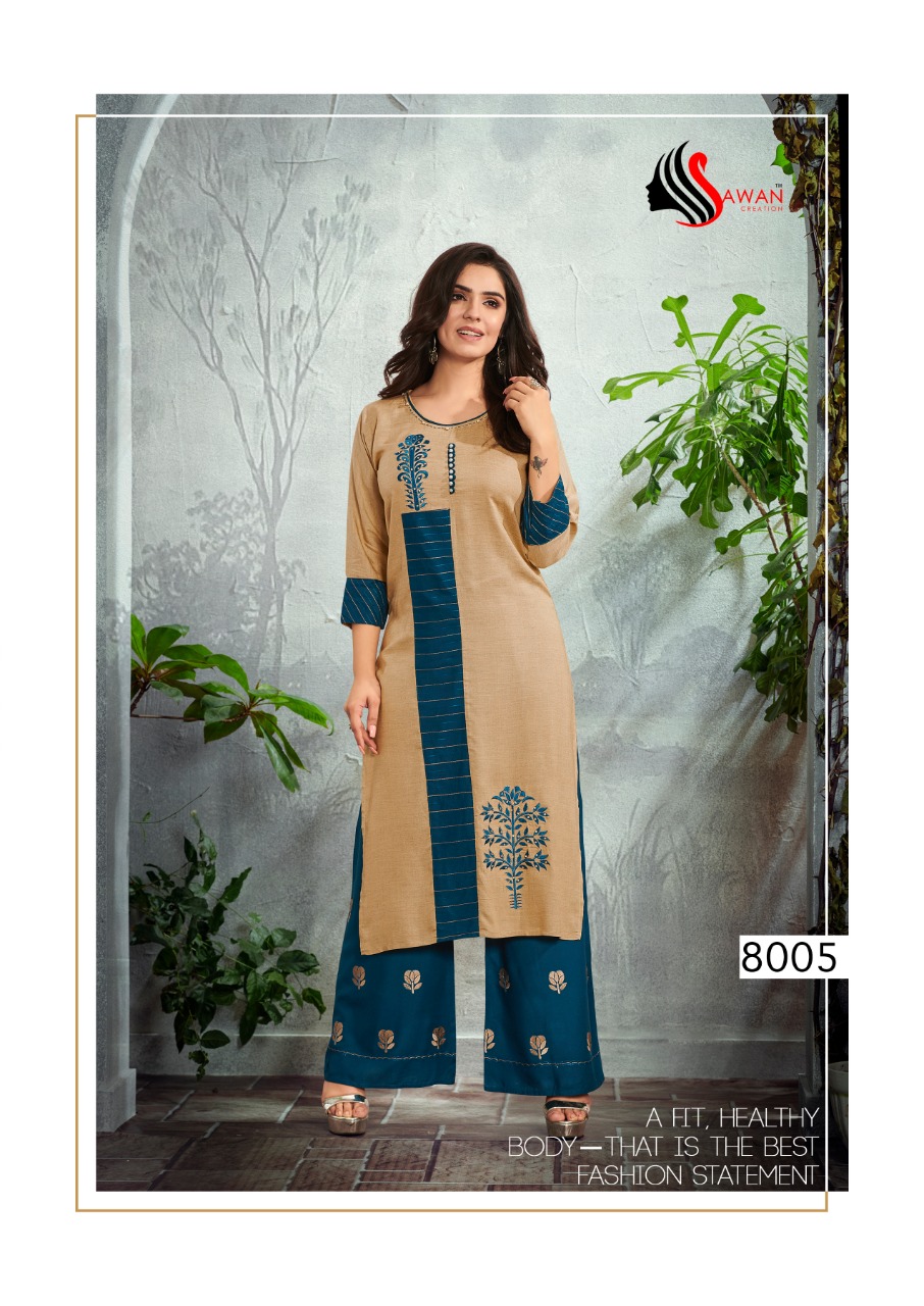 Sawan Creation Dani Vol 8 Rayon With Work Kurti With Plazzo Premium Collections