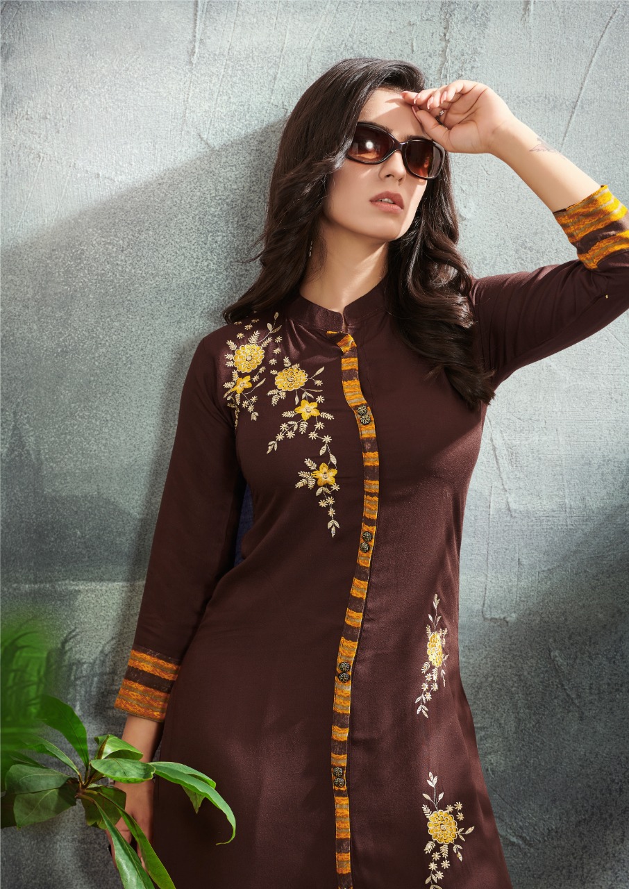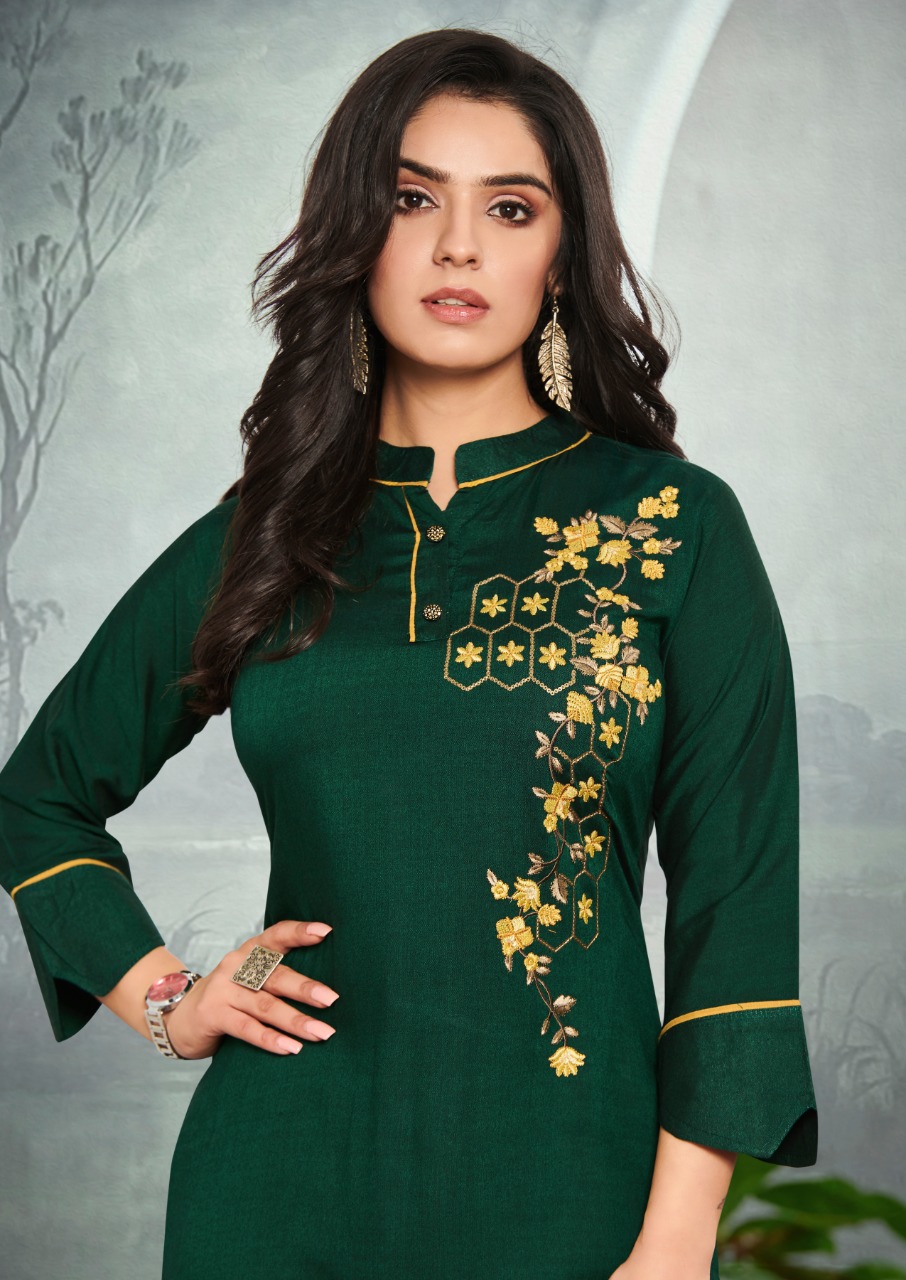 SURAT SAWAN CREATION Kurti with PLAZZO premium collection 📒 Catalogue name - DANI VOL-8 💎 Details ⏬ 👗 Fabric :- Top :- Heavy Rayon 14 Kg, Injectionslub, Heavy Milange with Embroidery work. Plazzo :- Heavy Rayon with embroidery work & Rayon Strips & Chex PLAZZO ⚜ Design :- 8⃣ 🔅Size :- M, L, XL,XXL,3XL. 📏Length :- 44 to 45. 💰Price :- 6⃣6⃣5⃣ ➕ 5%GST 📦Dispatch :- Monday. |