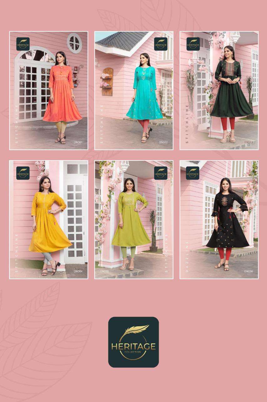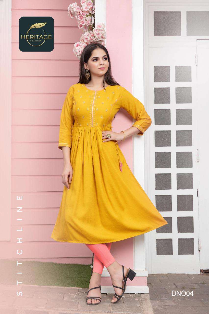 Sayesha VOL-2 BY HERITAGE HEAVY RAYON TWO-TONE DESIGNER EMBROIDERED KURTI WITH GHERA & HANDWORK KURTI CATALOG WHOLESALER BEST RATE