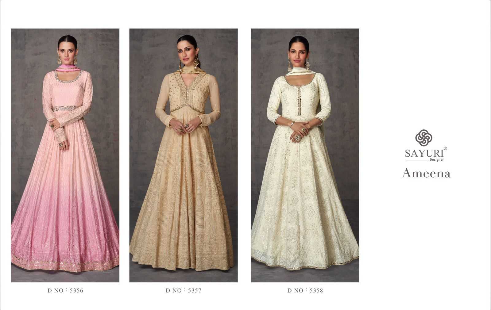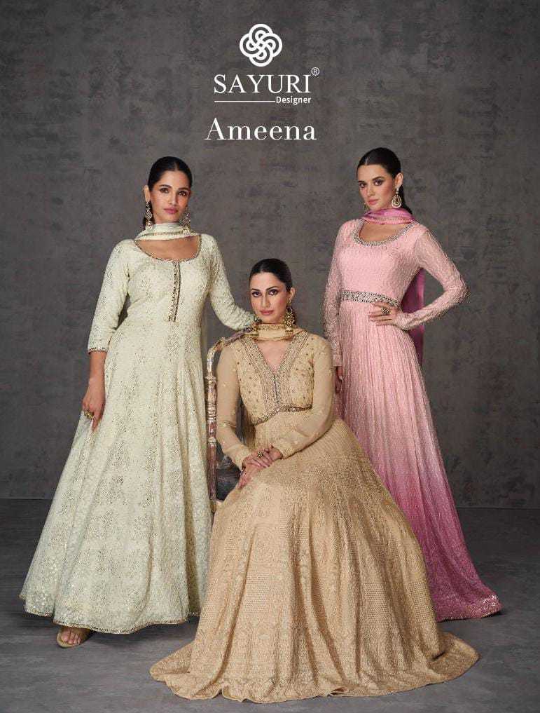 sayuri designer ameena readymade occasion wear long gown with dupatta
