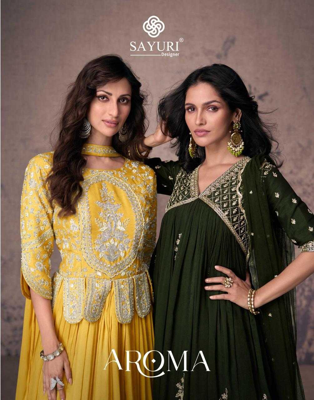 SAYURI DESIGNER AROMA (3 PCS) FABRIC - REAL CHINON SILK / PREMIUM SILK ( FRONT AND BACK EMBROIDERED ) PRICE - 2099 NOTE : M TO XXL ON BOOKING RATE 2299/- |