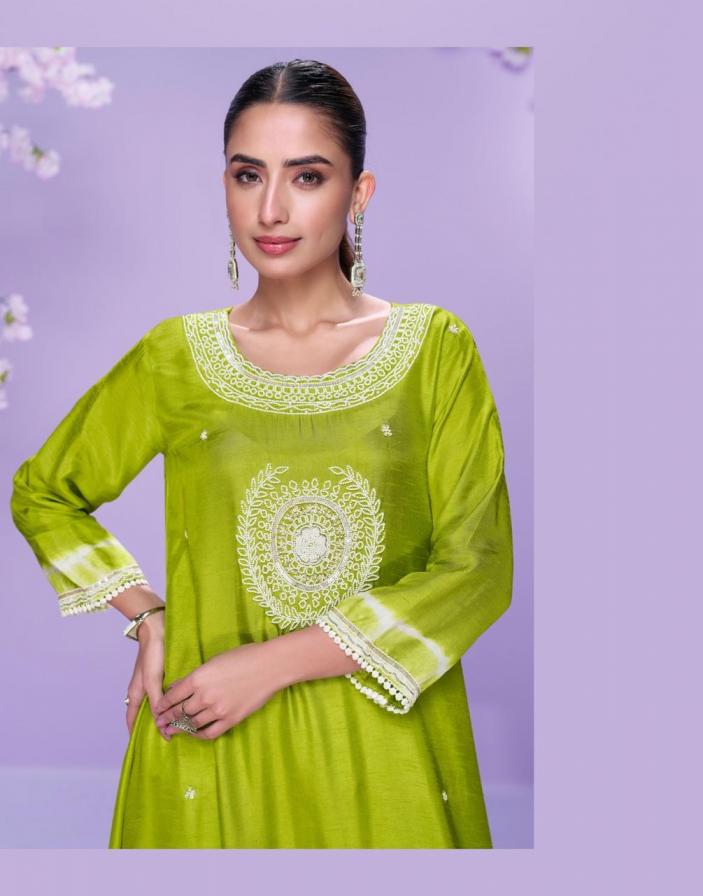 SAYURI DESIGNER CHAHAT (4 PCS) FABRIC - PREMIUM REAL SILK ( LATEST TRENDY SILK EMBROIDERED KURTI STYLE WITH HAND MOTI TOUCH ) PRICE - 1199/- |