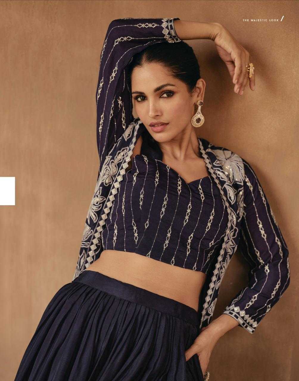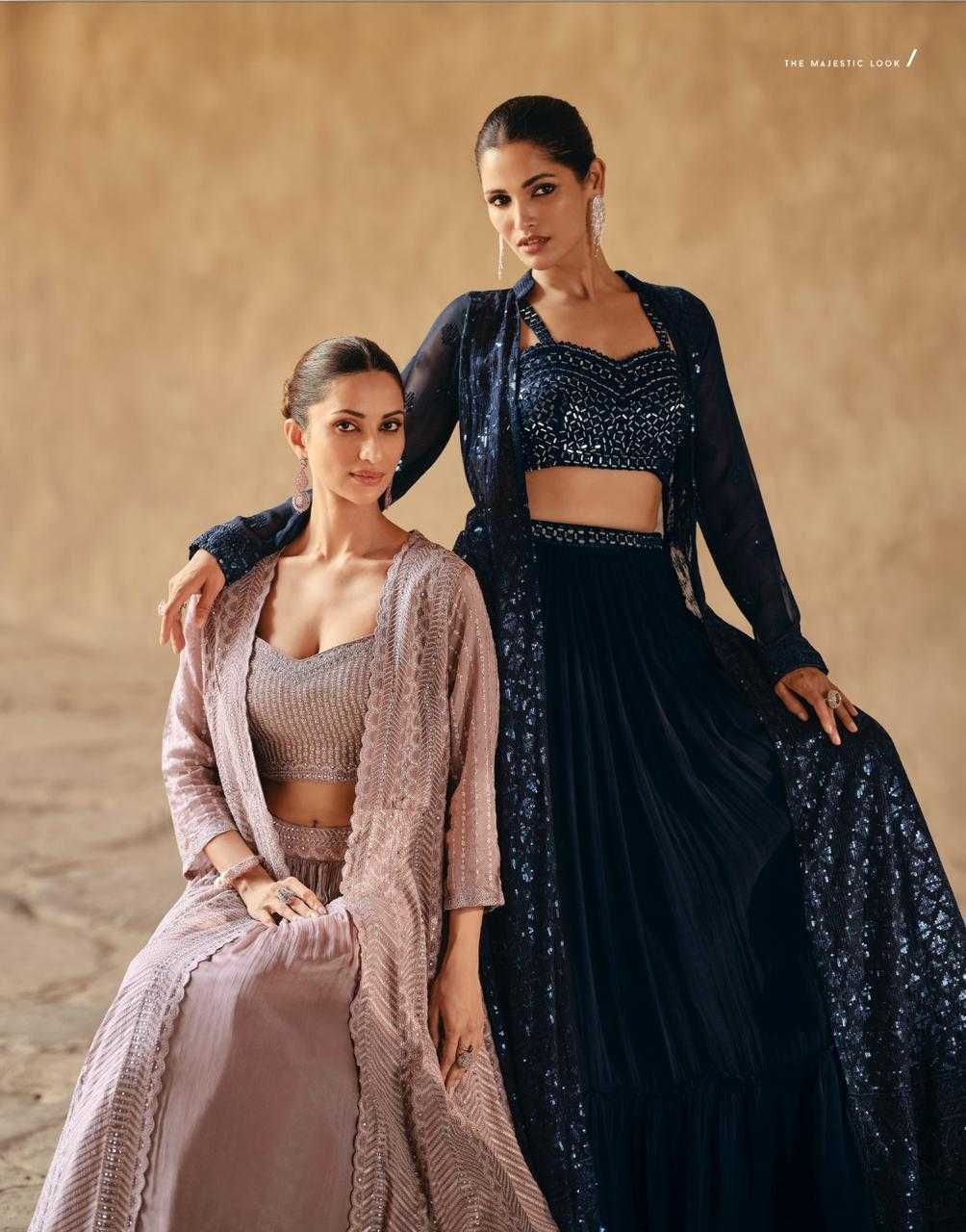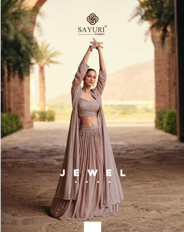 sayuri designer jewel exclusive western wear readymade crop top lehenga with long shrug
