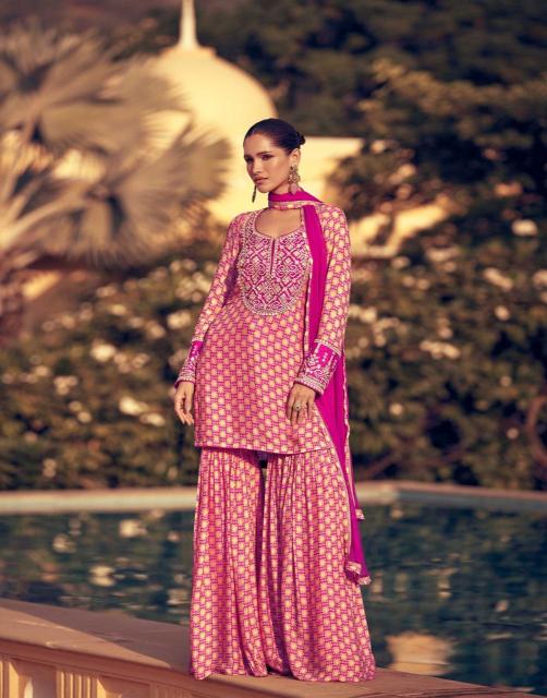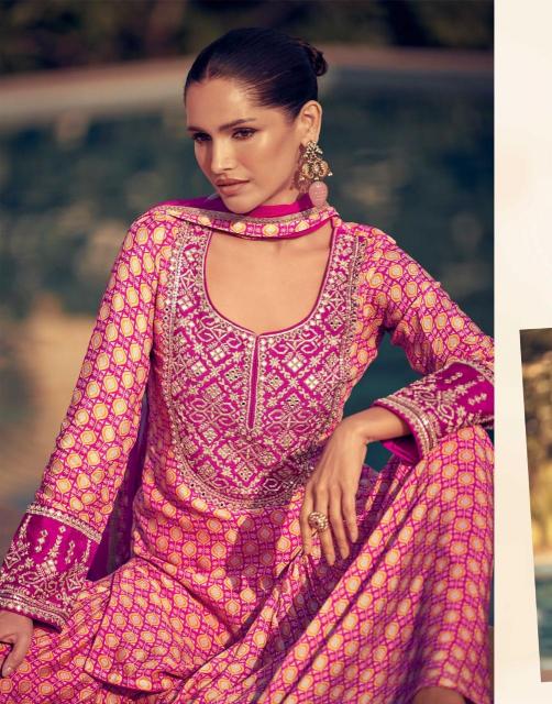 sayuri designer kasida three different style chinon silk readymade ladies dress