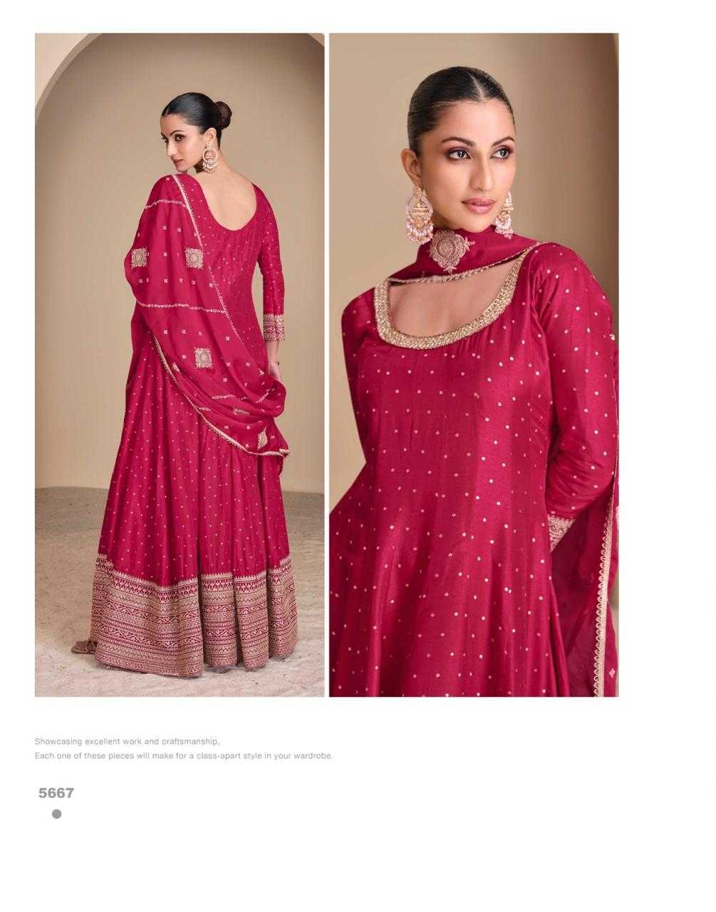sayuri designer leela viscose jacquard silk readymade party wear gown set