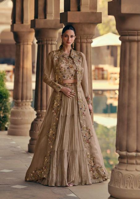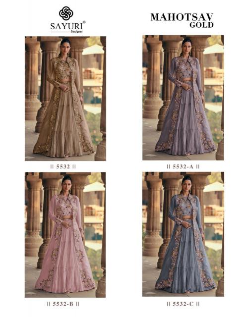 SAYURI DESIGNER MAHOTSAV GOLD (4 PCS) FABRIC - REAL CHINON SILK / PREMIUM ORGANZA SILK SHRUG PRICE - 2899/- |