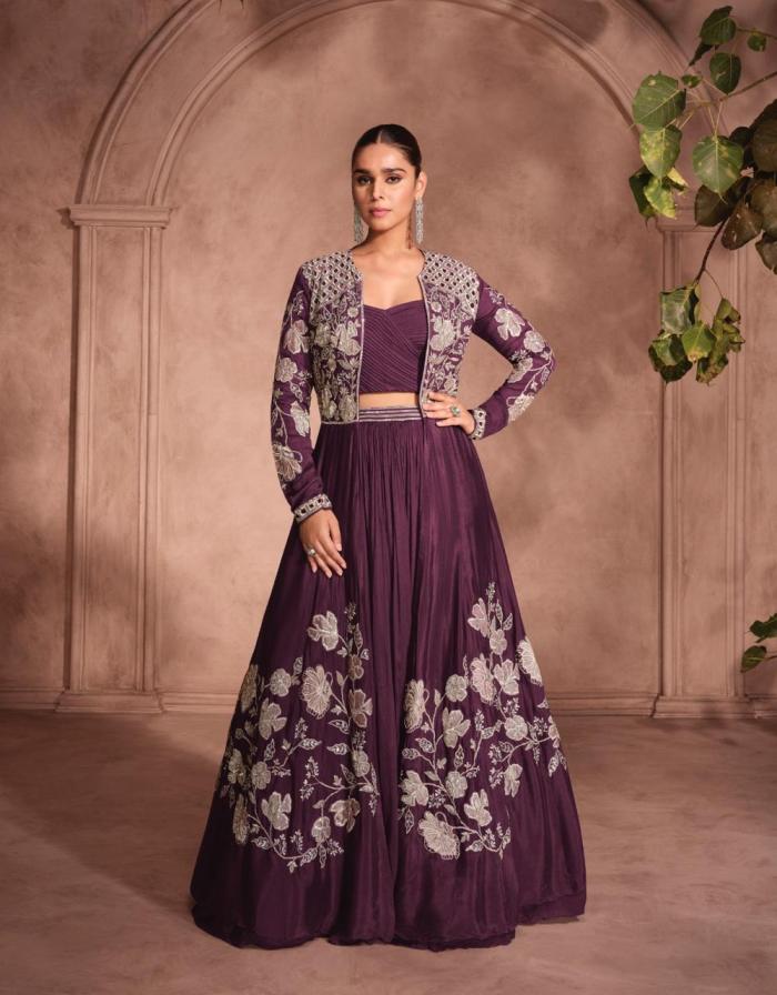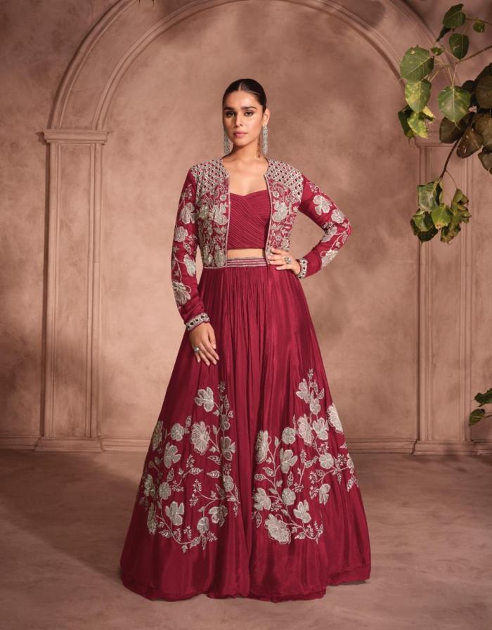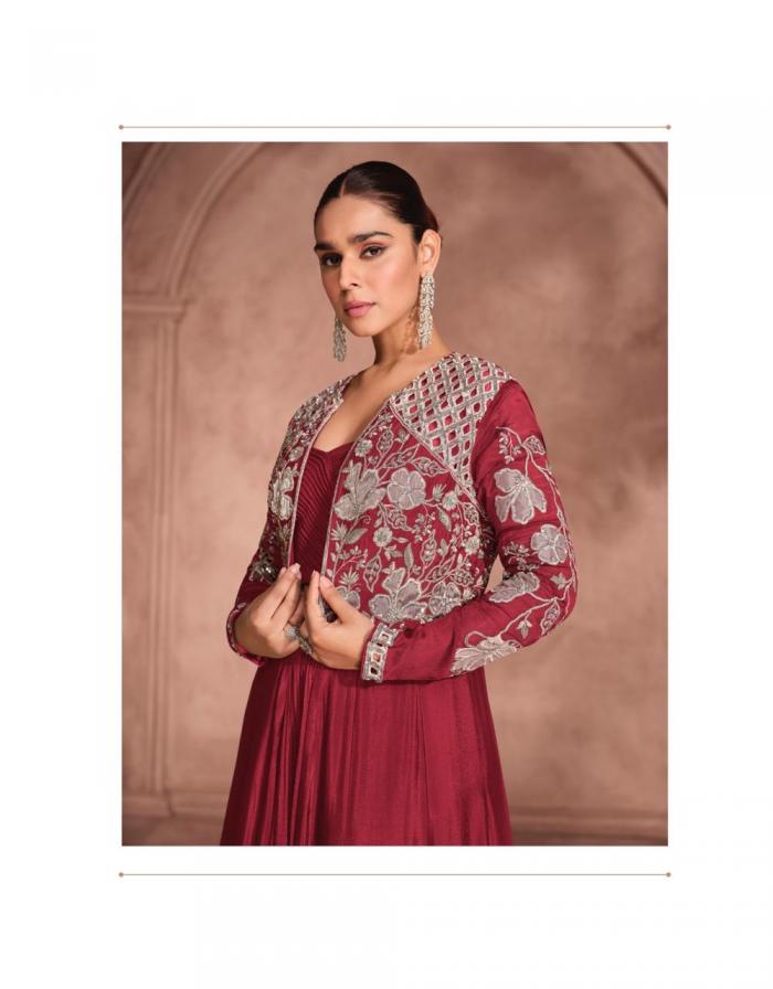 SAYURI DESIGNER MANNAT (4 PCS) FABRIC - REAL PREMIUM CHINON SILK ( FULL HEAVY LOOK FRONT AND BACK EMBROIDERED SHRUG WITH STYLIST BLOUSE AND LHENGHS WITH CANCAN ) PRICE - 2999 |