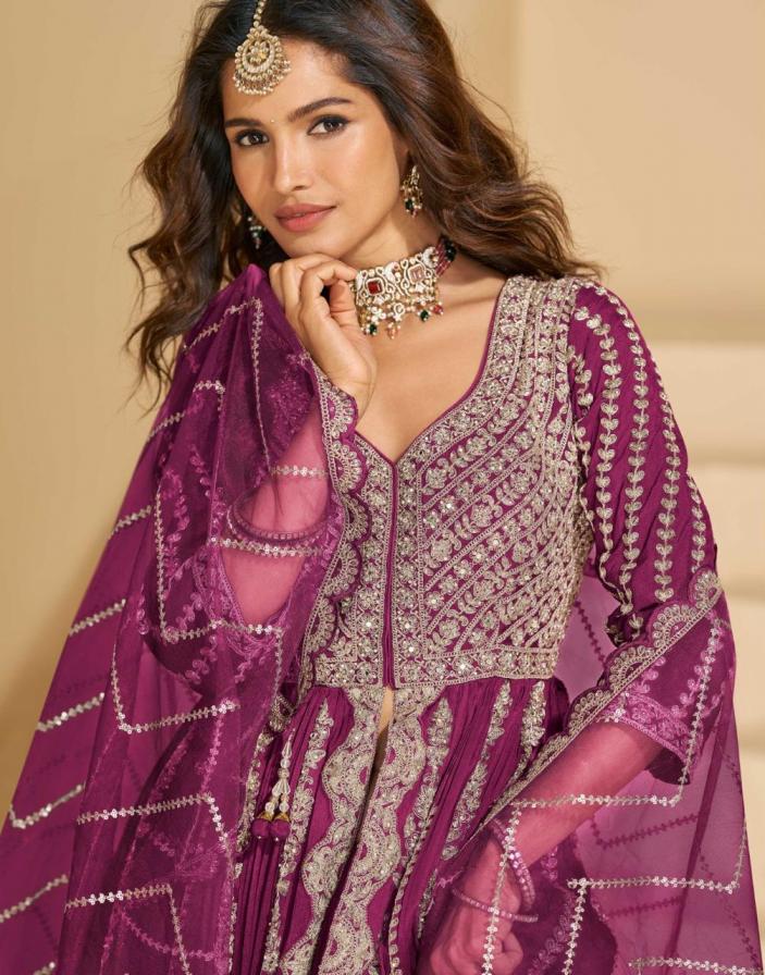 SAYURI DESIGNER MIRZA (5 PCS) FABRIC - PREMIUM REAL CHINON SILK ( FULL HEAVY LOOK FRONT AND BACK EMBROIDERED FRONT CUT FLOOR LENGTH TOP WITH SKIRT AND EMBROIDERED DUPATTA ) PRICE -3299 NOTE - M TO XXL (Make to Order) 3499/- |