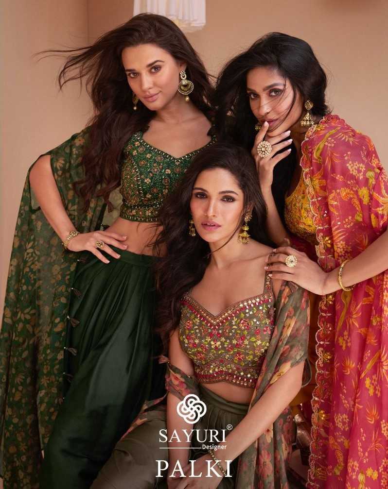 sayuri designer palki very stylish designer blouse dhoti with shrug readyamade western wear