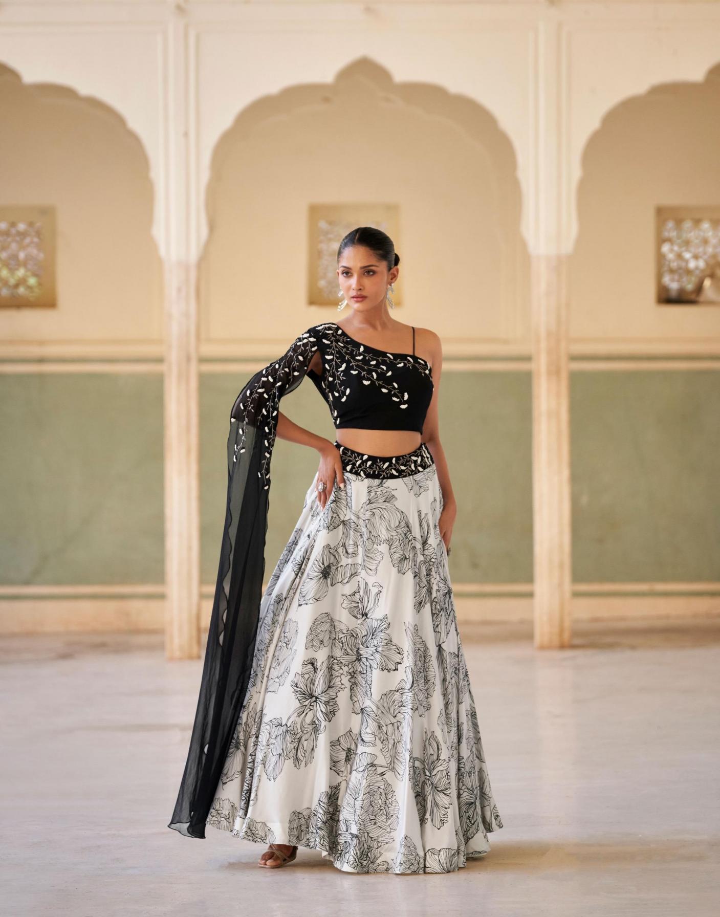 SAYURI DESIGNER QAYAAMAT (3 PCS) FABRIC - PREMIUM REAL CHINON / BANGLORI/ CREP SILK ( WEDDING LOOK STYLIST FRONT AND BACK HAND WORK EMBROIDERED CROP TOP LHENGHS WITH CANCAN ) PRICE -2699/- |