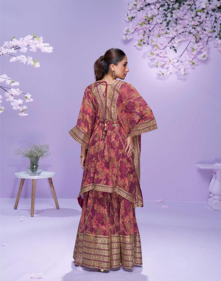 sayuri designer raahi georgette readymade traditional kaftan kurti with gharara