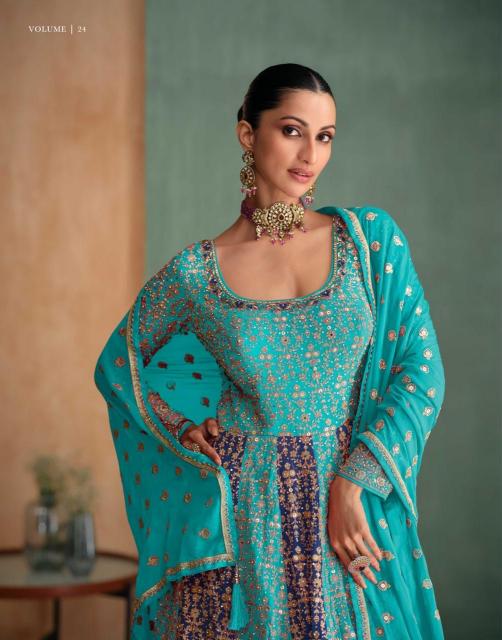 SAYURI DESIGNER RANG RASIA VOL 2(4 PCS) FABRIC - REAL GEROGETTE ( FULL HEAVY LOOK SEROSKI DIAMOND EMBROIDERED DRESSES WITH EMBROIDERED DUPATTA ) PRICE - 3499 per pcs |