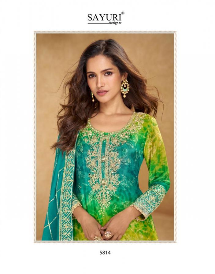 sayuri designer rangeela chinon silk full stitch exclusive plazzo style 3pcs dress