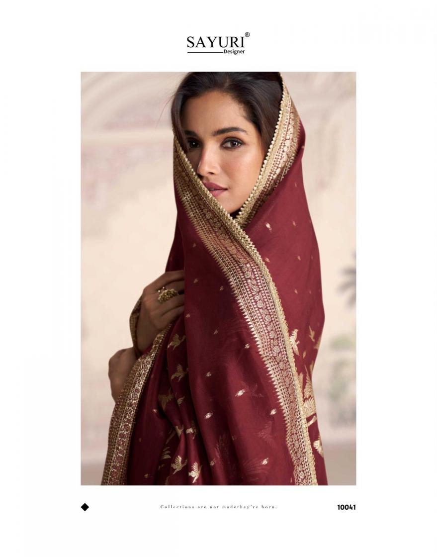 sayuri designer roshni readymade party wear silk viscose jacquard silk gown with dupatta