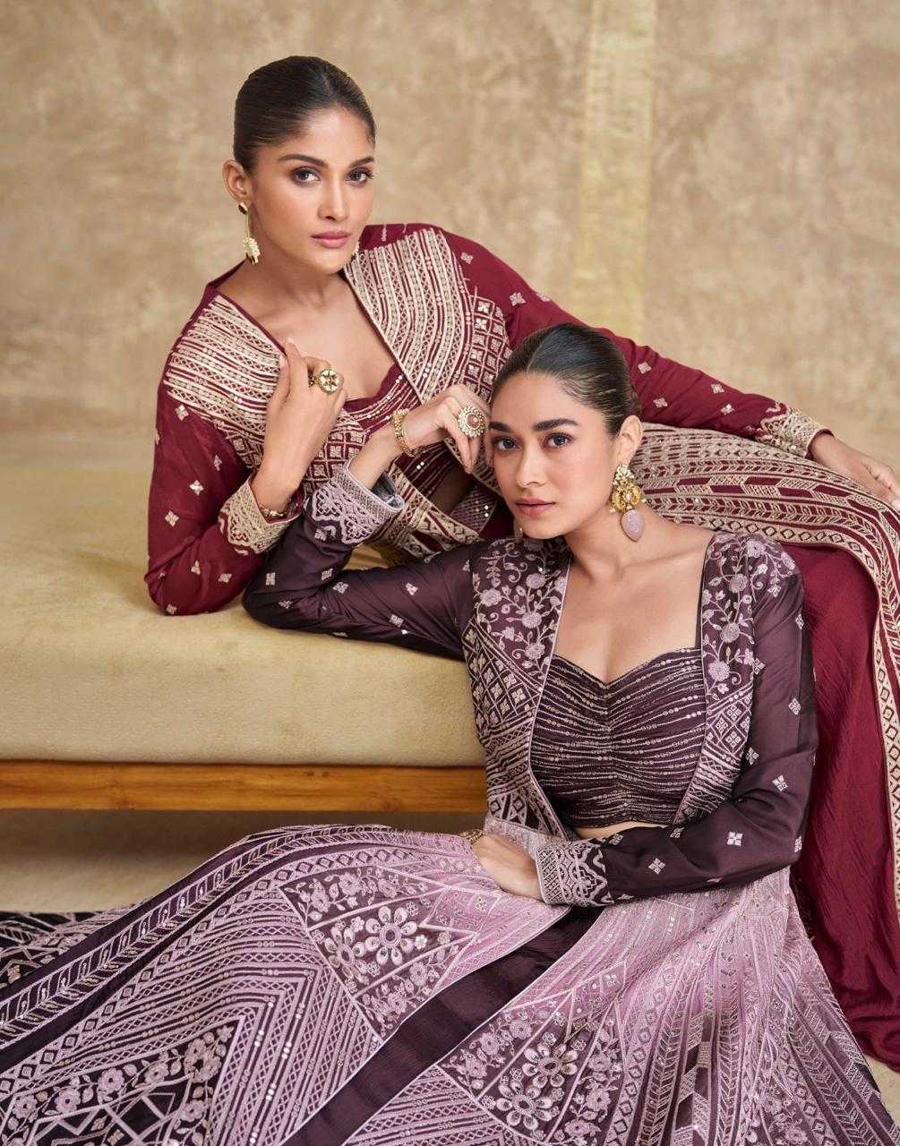 SAYURI DESIGNER TYOHAAR (2 PCS) FABRIC - REAL PREMIUM CHINON SILK ( FRONT AND BACK EMBROIDERED WITH CANCAN ) PRICE - 3499 |