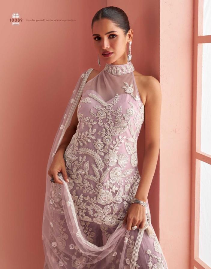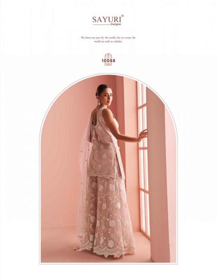 sayuri designer verona fashionable design net full stitch plazzo kurti dupatta