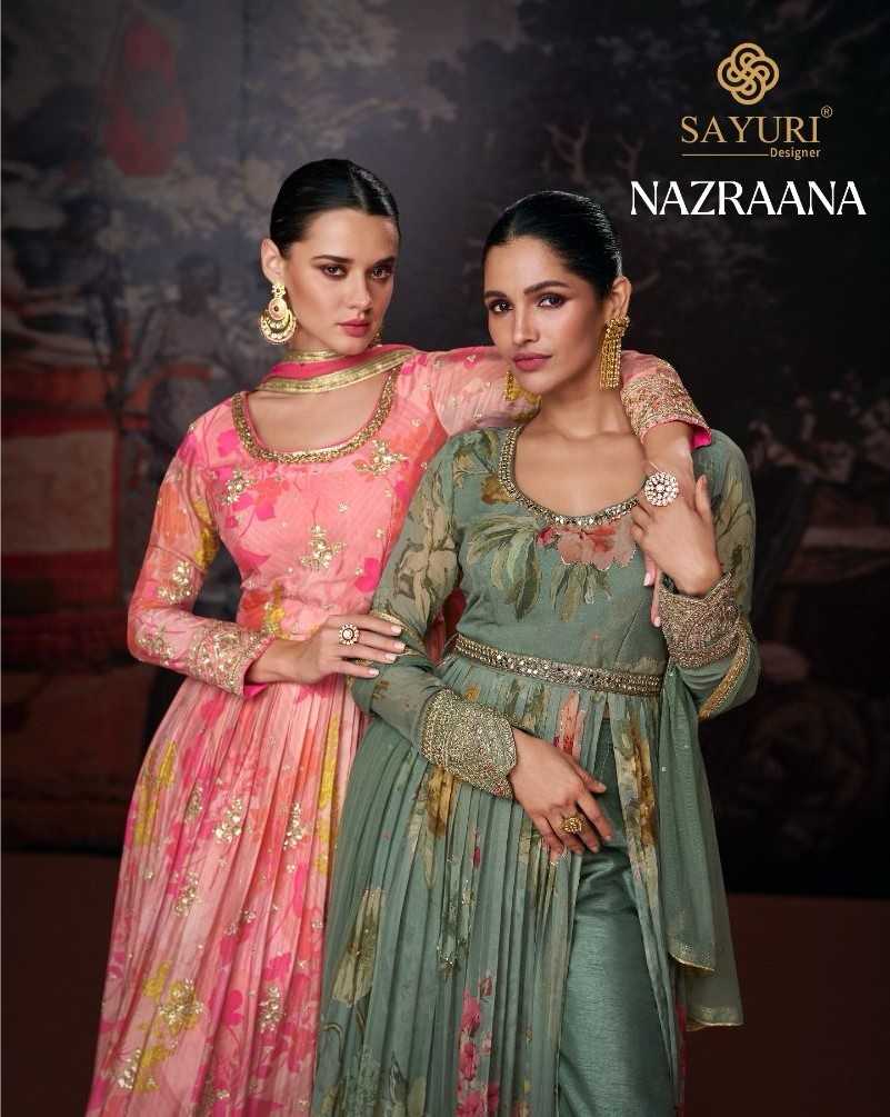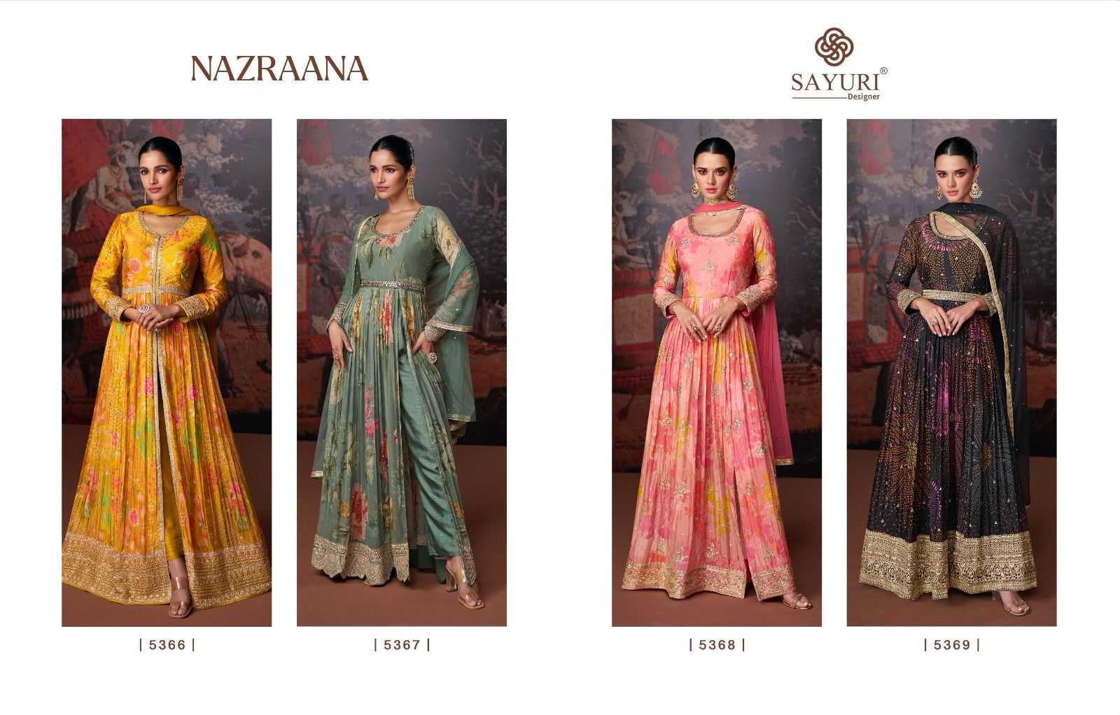 sayuri nazraana designer readymade long gown with dupatta festive wear catalog