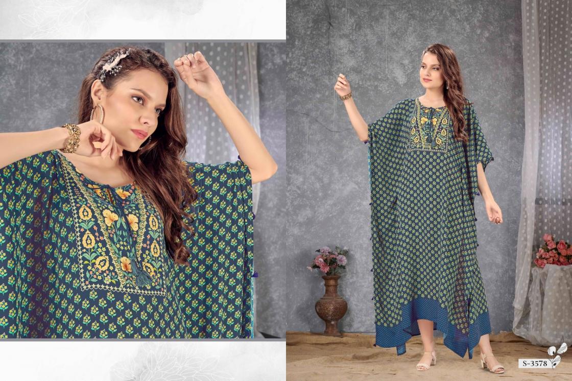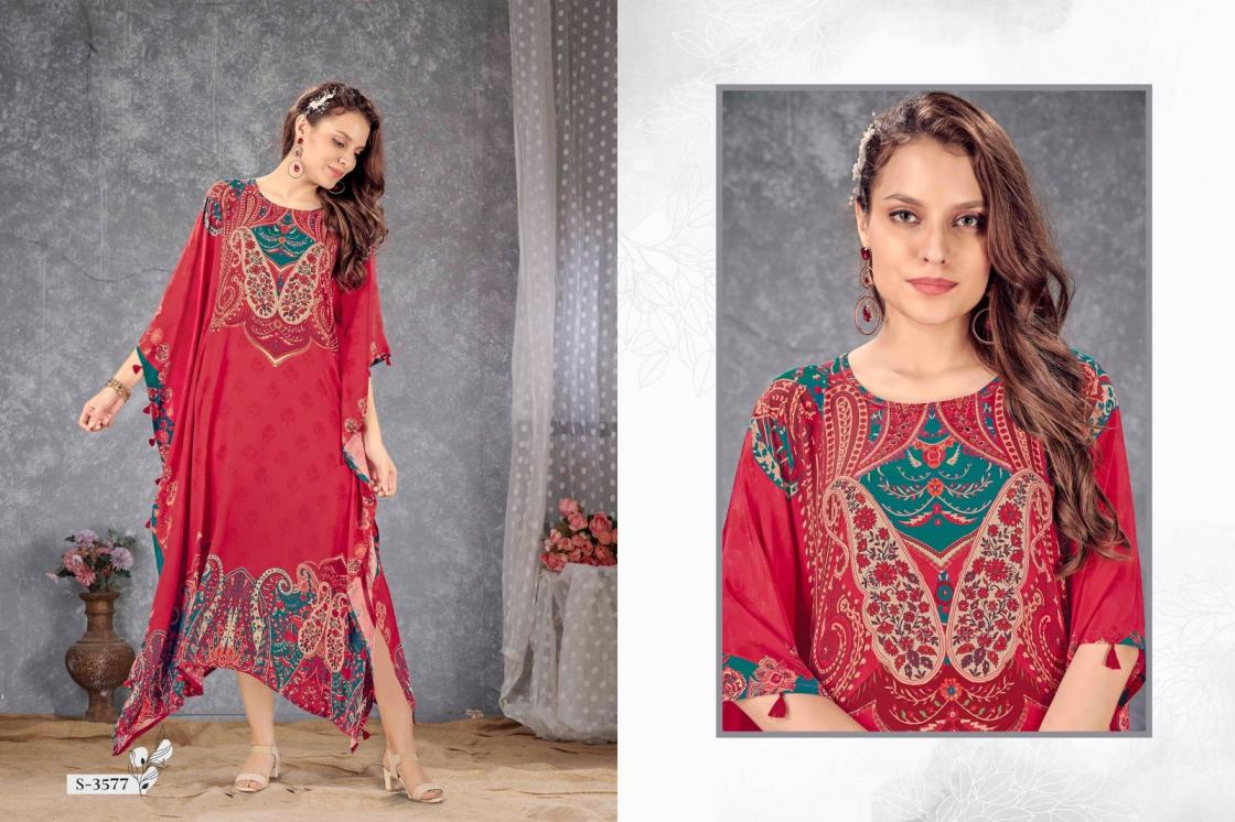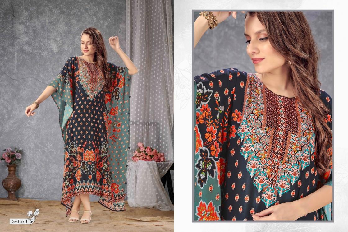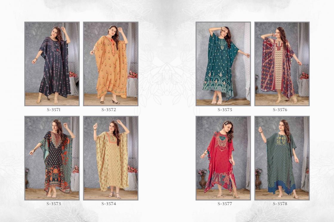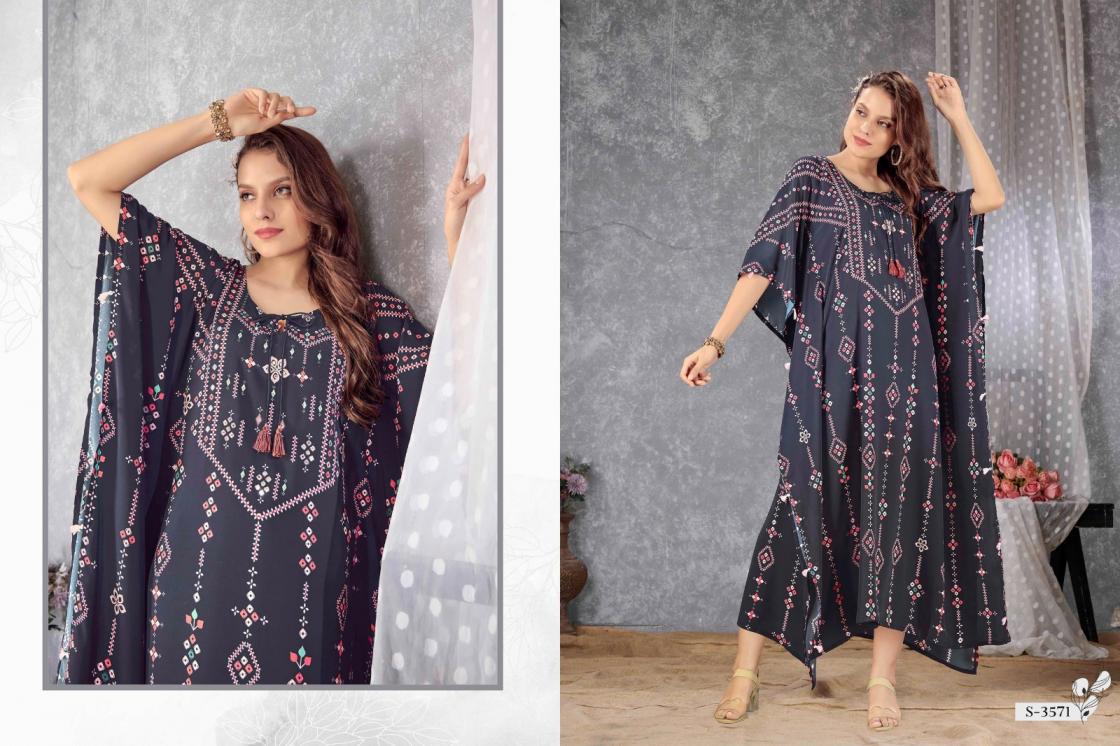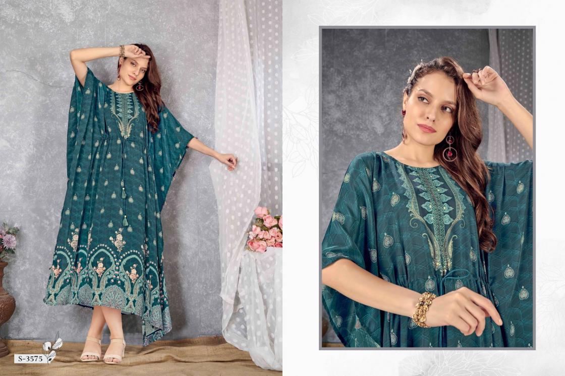 BRAND - SBS CATALOG - NORITA KAFTAN SIZE M TO XL FABRIC SILK PRICE 675/- PER PCS GST EXTRA SET TO SET |