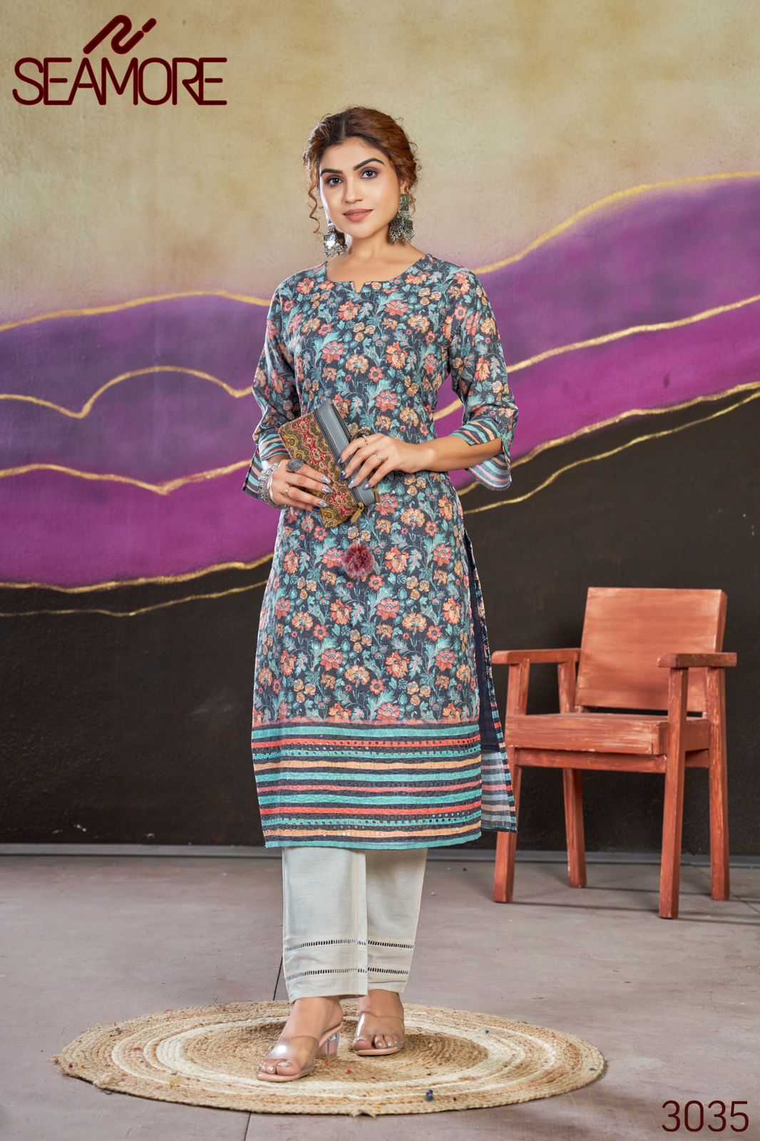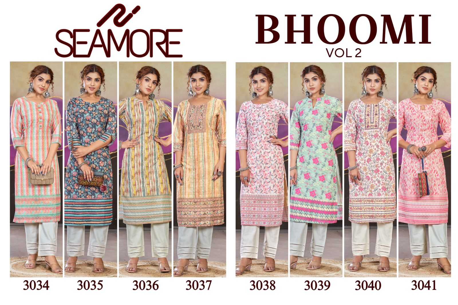 Brand - SEAMORE Catalog - Bhoomi (Vol2) Product typ - Women Only Kurti SKU - 3034 To 3041 Size - L To 3XL Fabric - Poly Cotton Price - 650/- Order Set to Set |