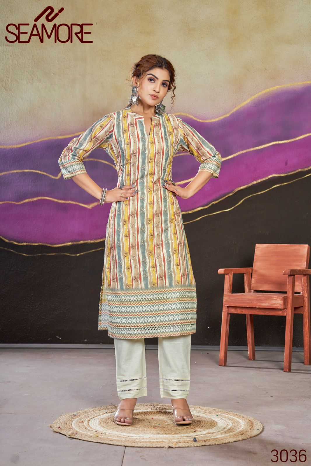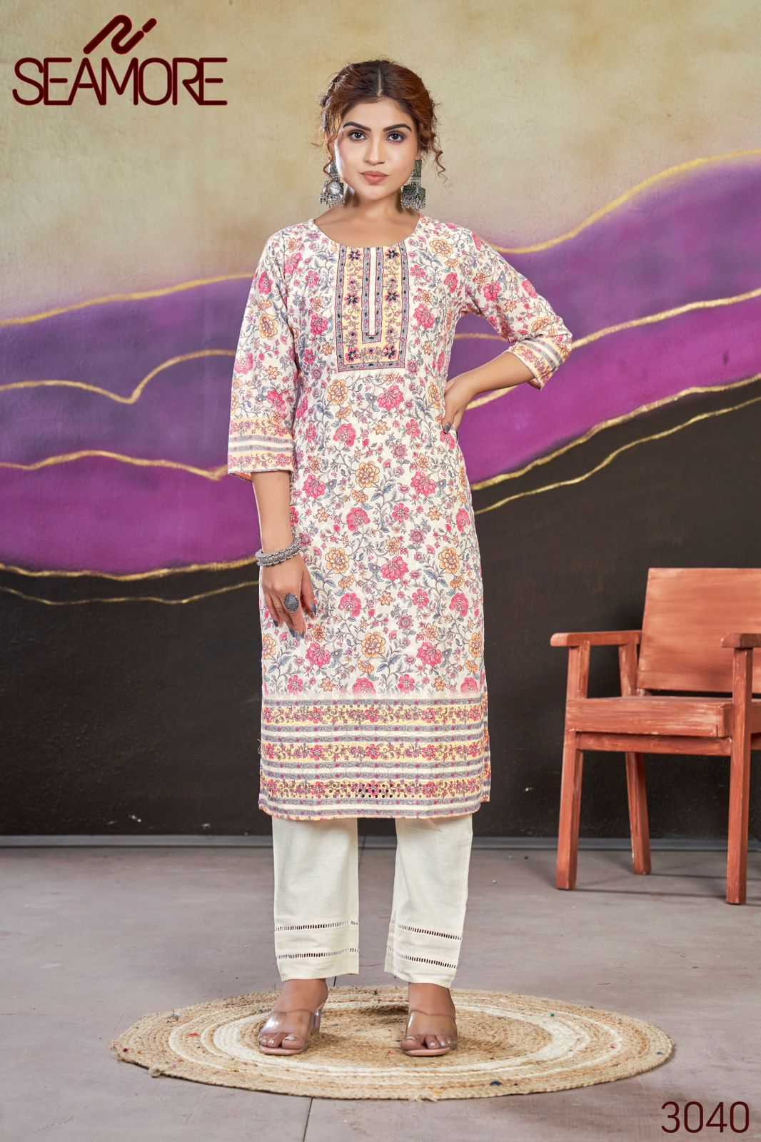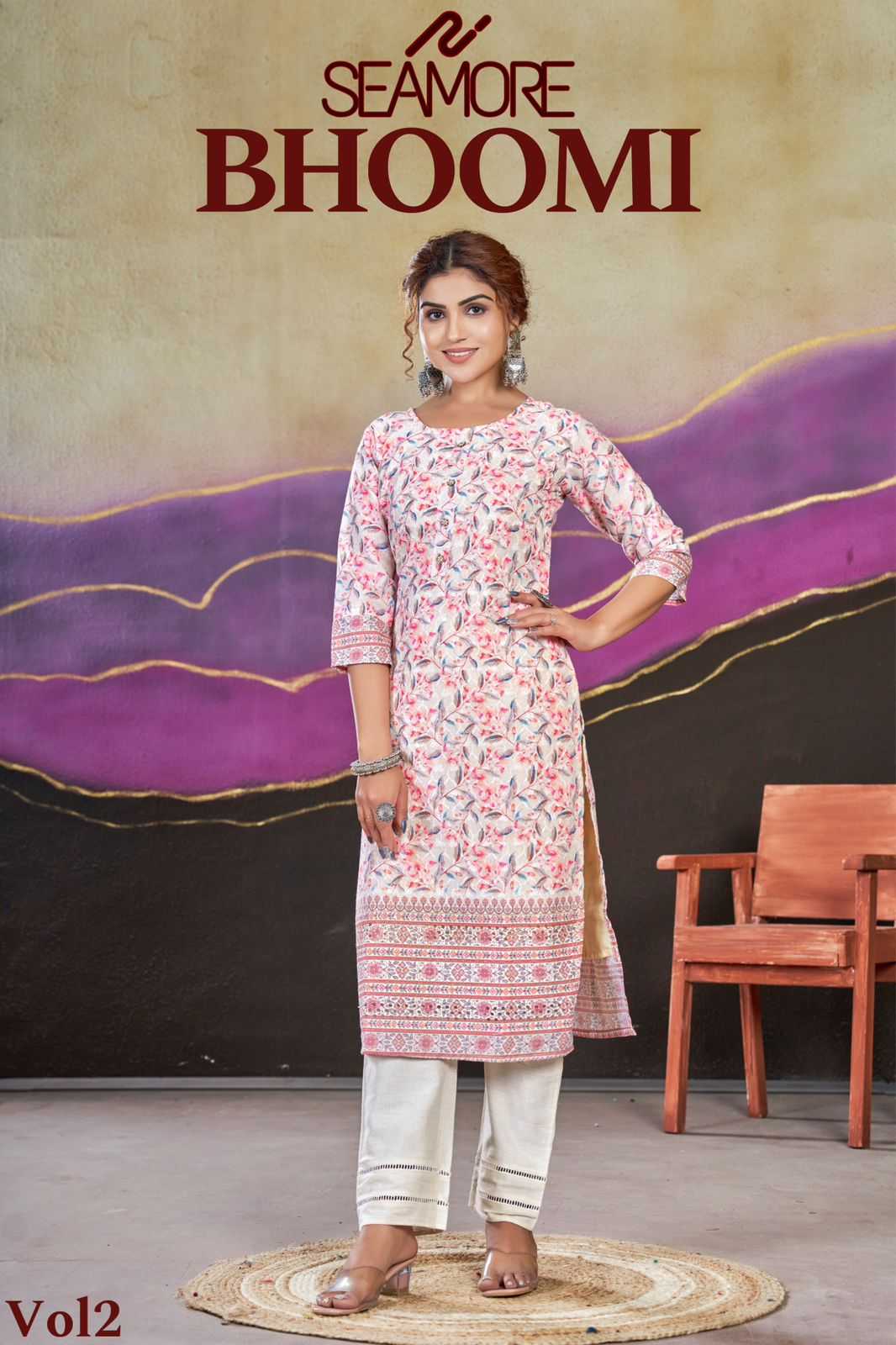 seamore bhoomi vol 2 readymade lakhnavi work with digital print kurti collection