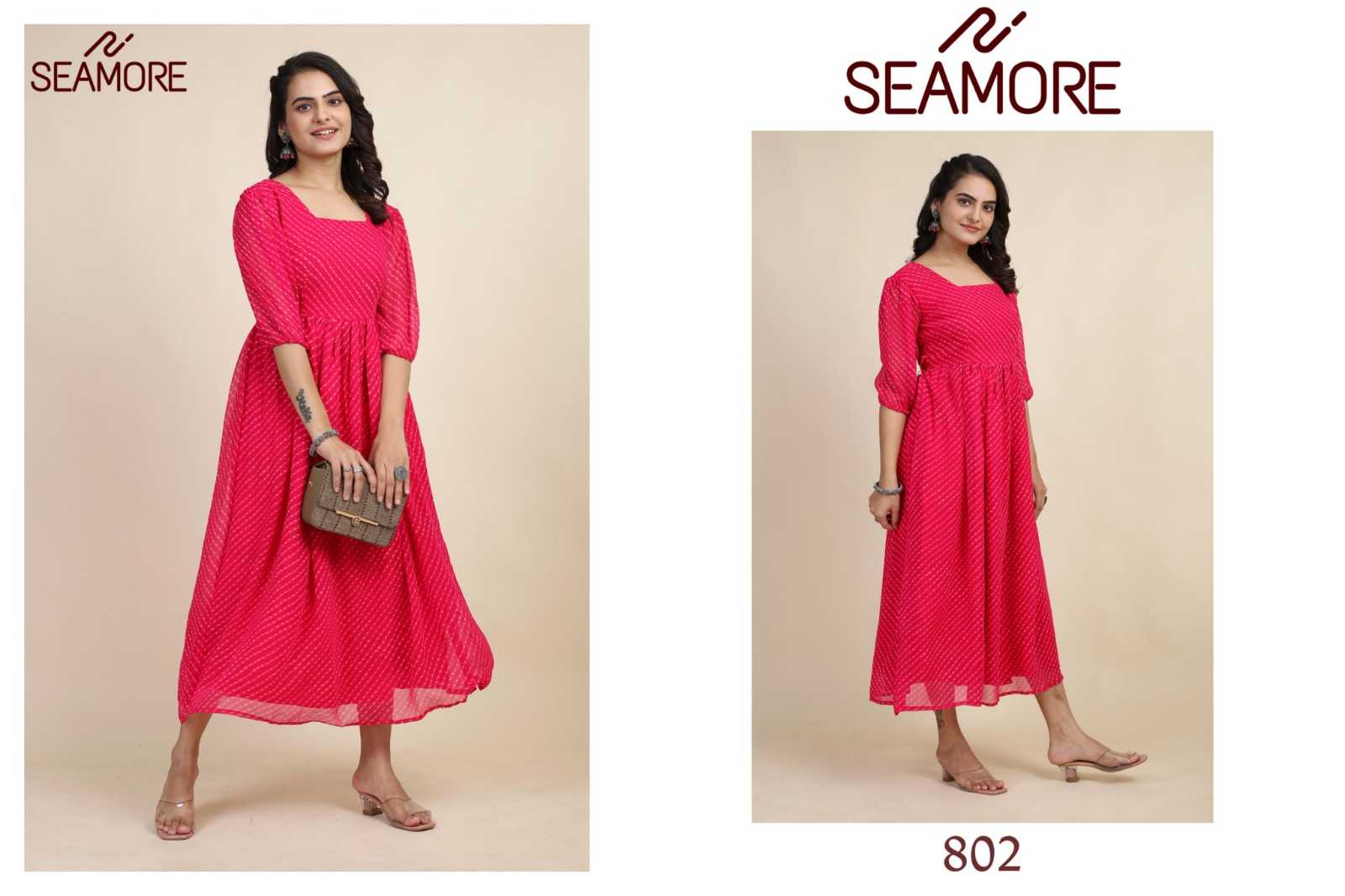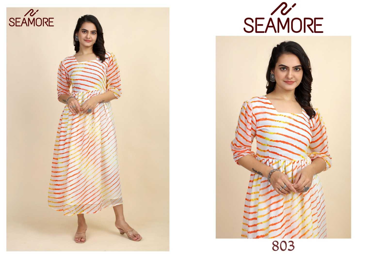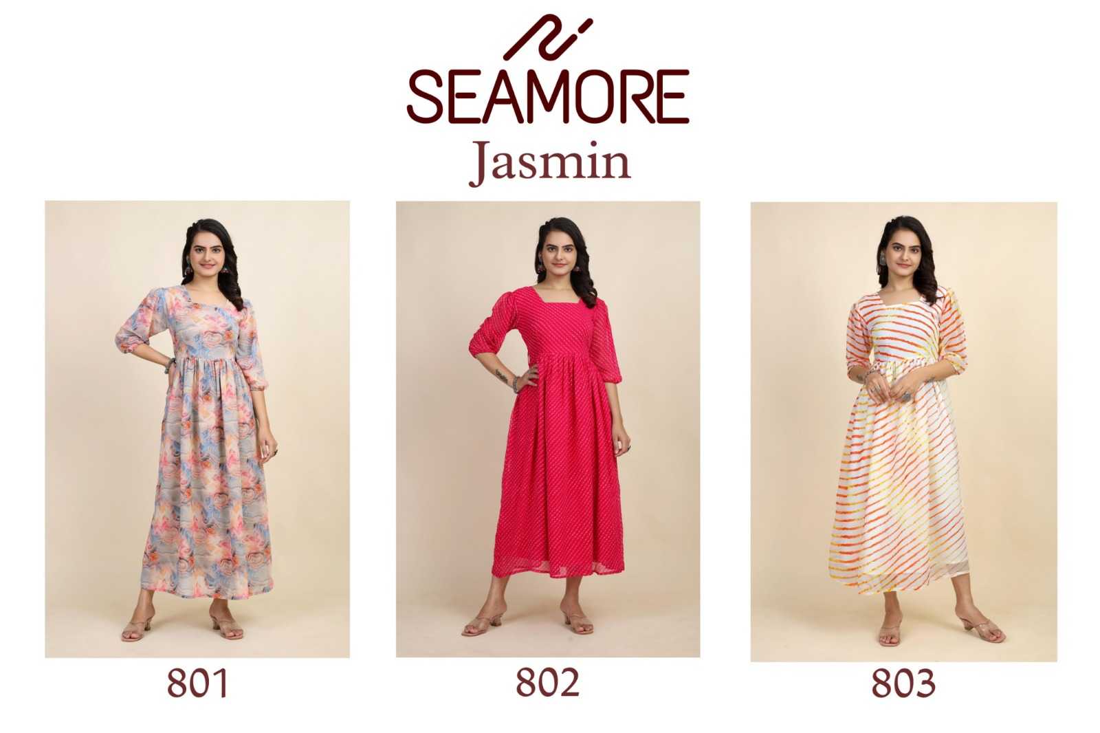 Brand - SEAMORE Catalog - Jasmin Product typ - Women Only SKU - 801 To 803 Size - M To XXL Fabric - Georgette Pattern - Printed frocks 48 inches length With Inner Price - 599/- Order Size Set 801 - M To XXL Order Set To Set |