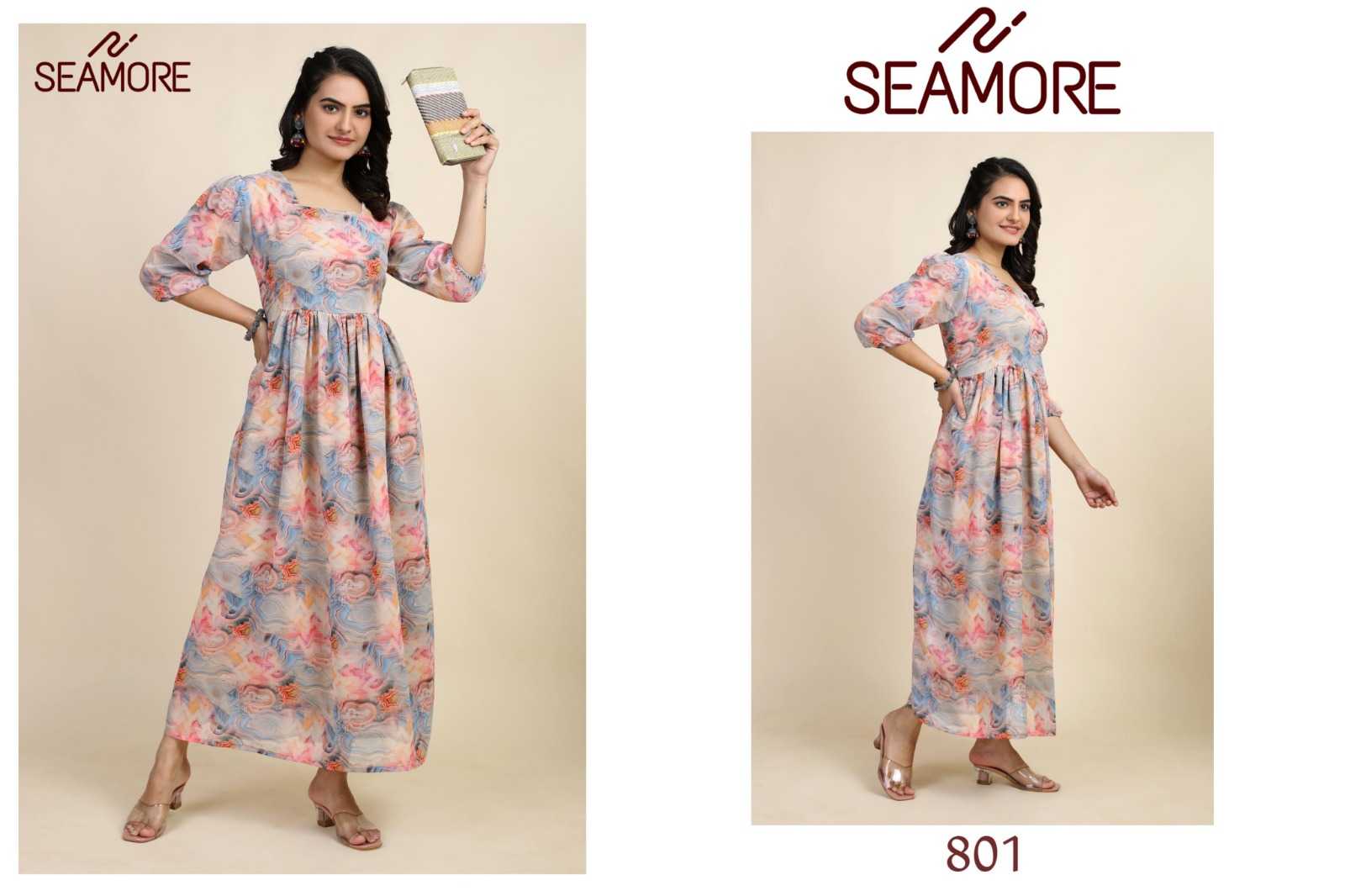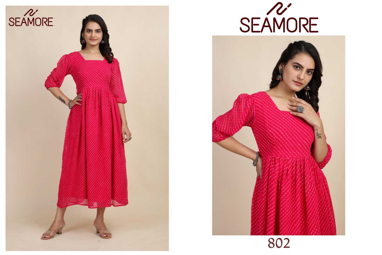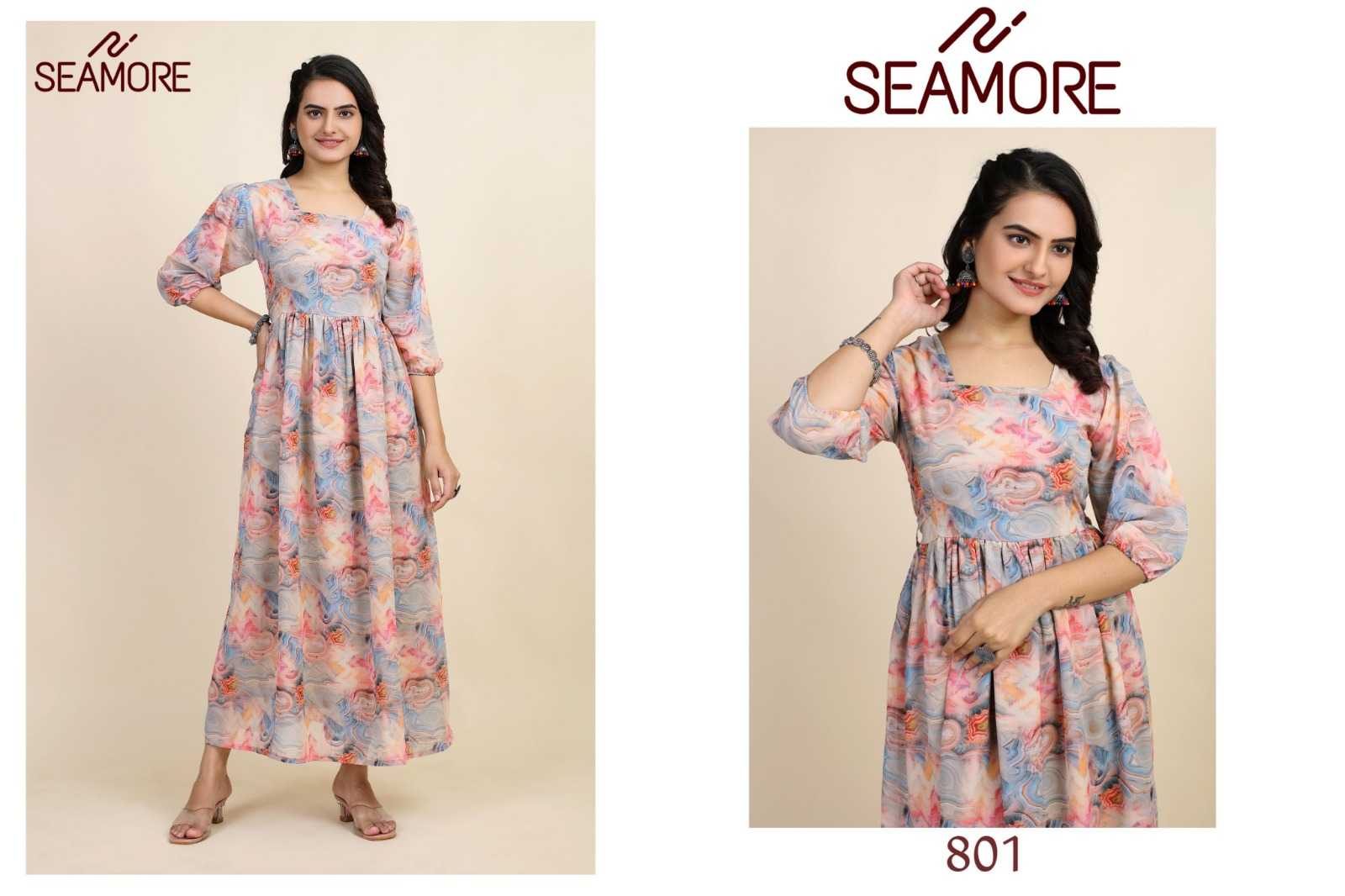 Brand - SEAMORE Catalog - Jasmin Product typ - Women Only SKU - 801 To 803 Size - M To XXL Fabric - Georgette Pattern - Printed frocks 48 inches length With Inner Price - 599/- Order Size Set 801 - M To XXL Order Set To Set |