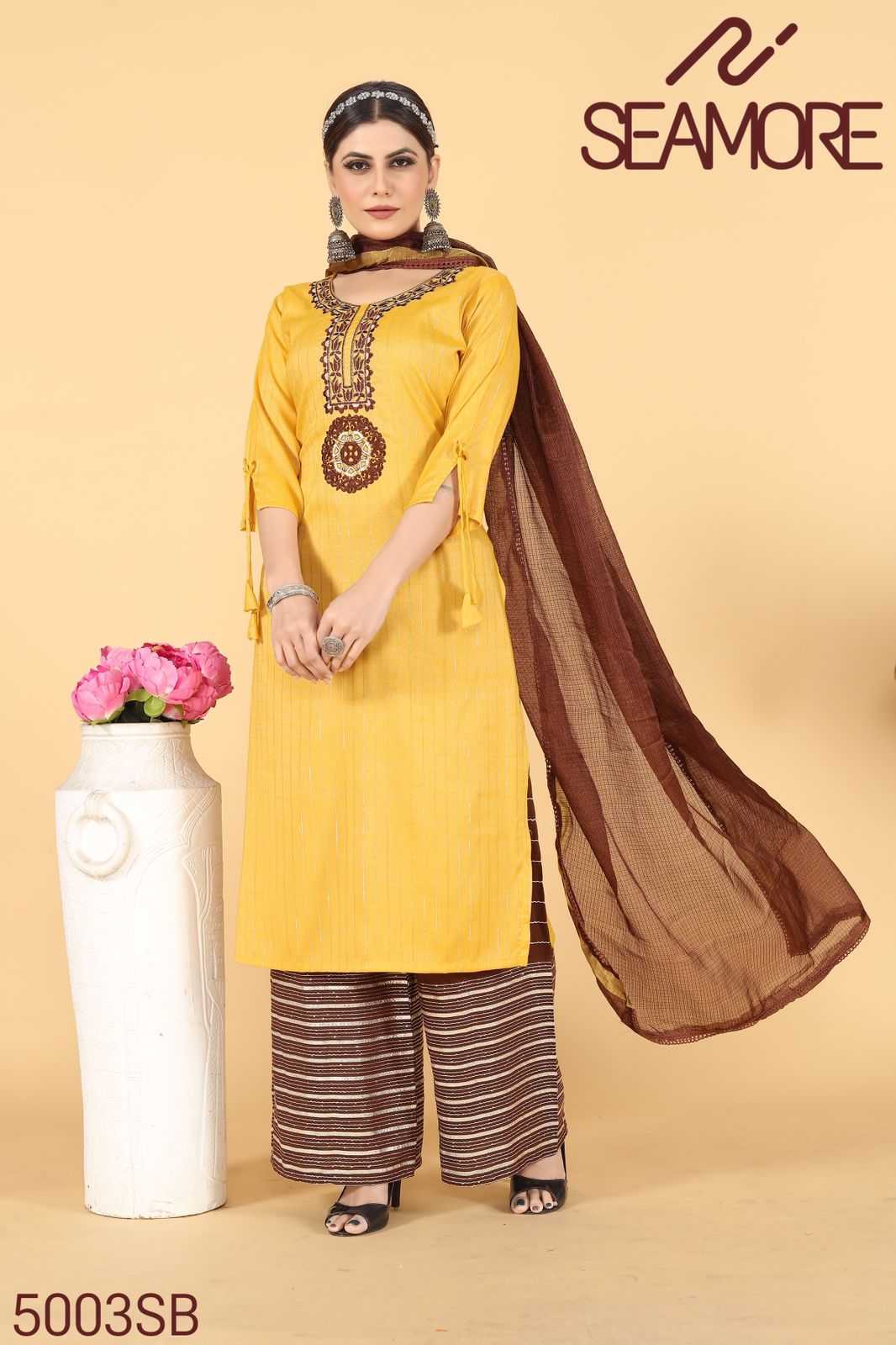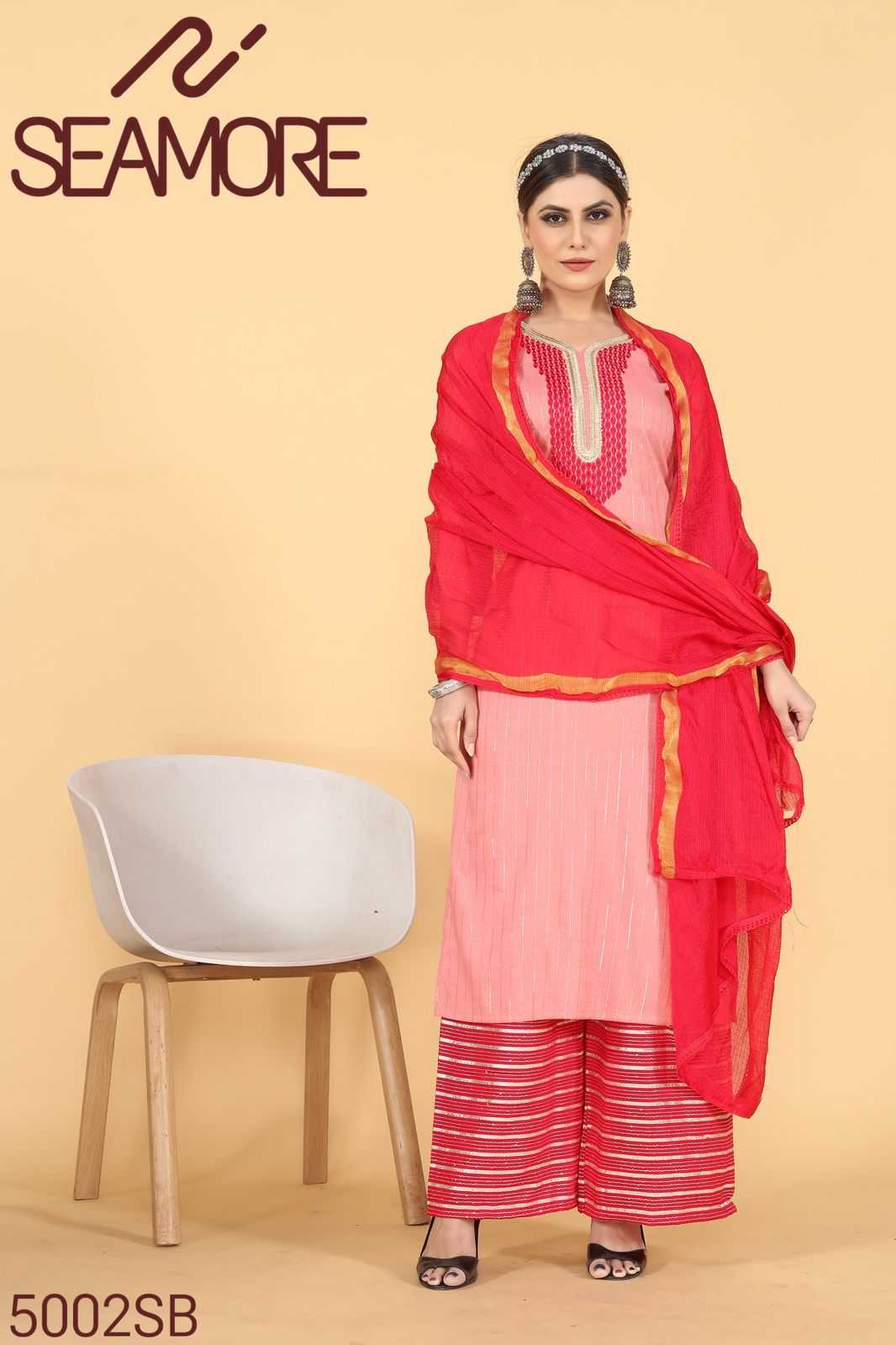 Brand - Seamore Catalog - Padmavati One Product typ - Women Kurta Bottom With Dupatta SKU - 5001SB To 5003SB Fabric - Rayon Lurex Price - 749/- Order Size Set (5002SB - M TO XXL) (5003SB - M TO XXL) Order Set To Set |