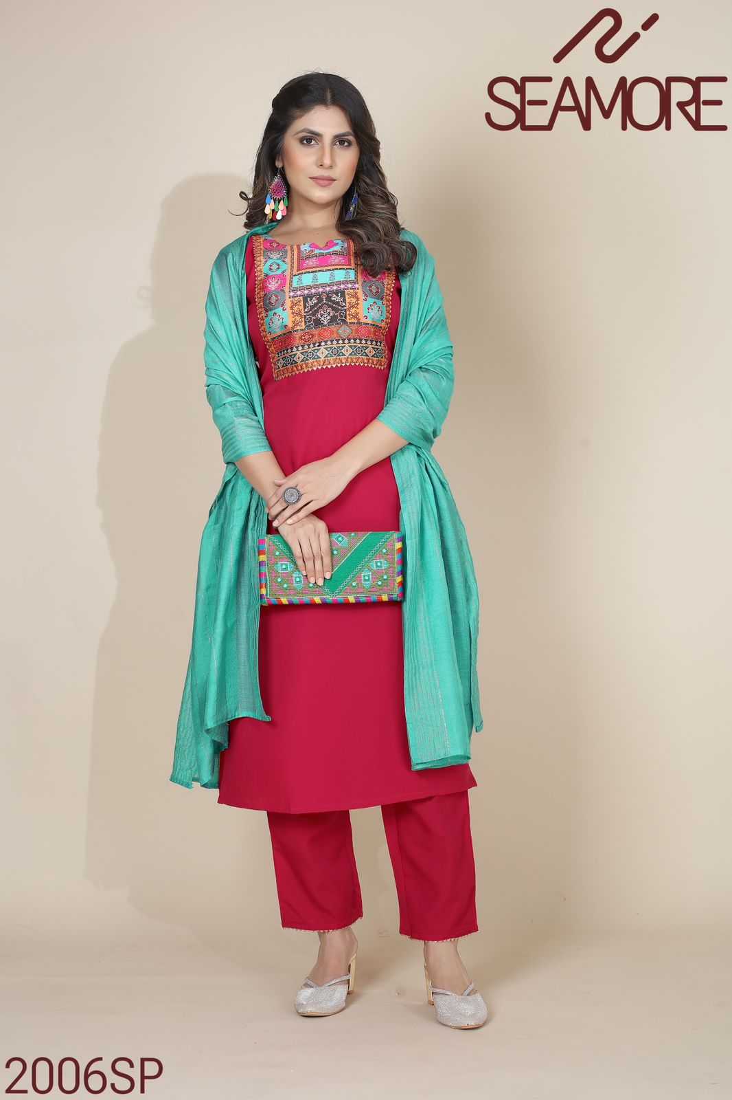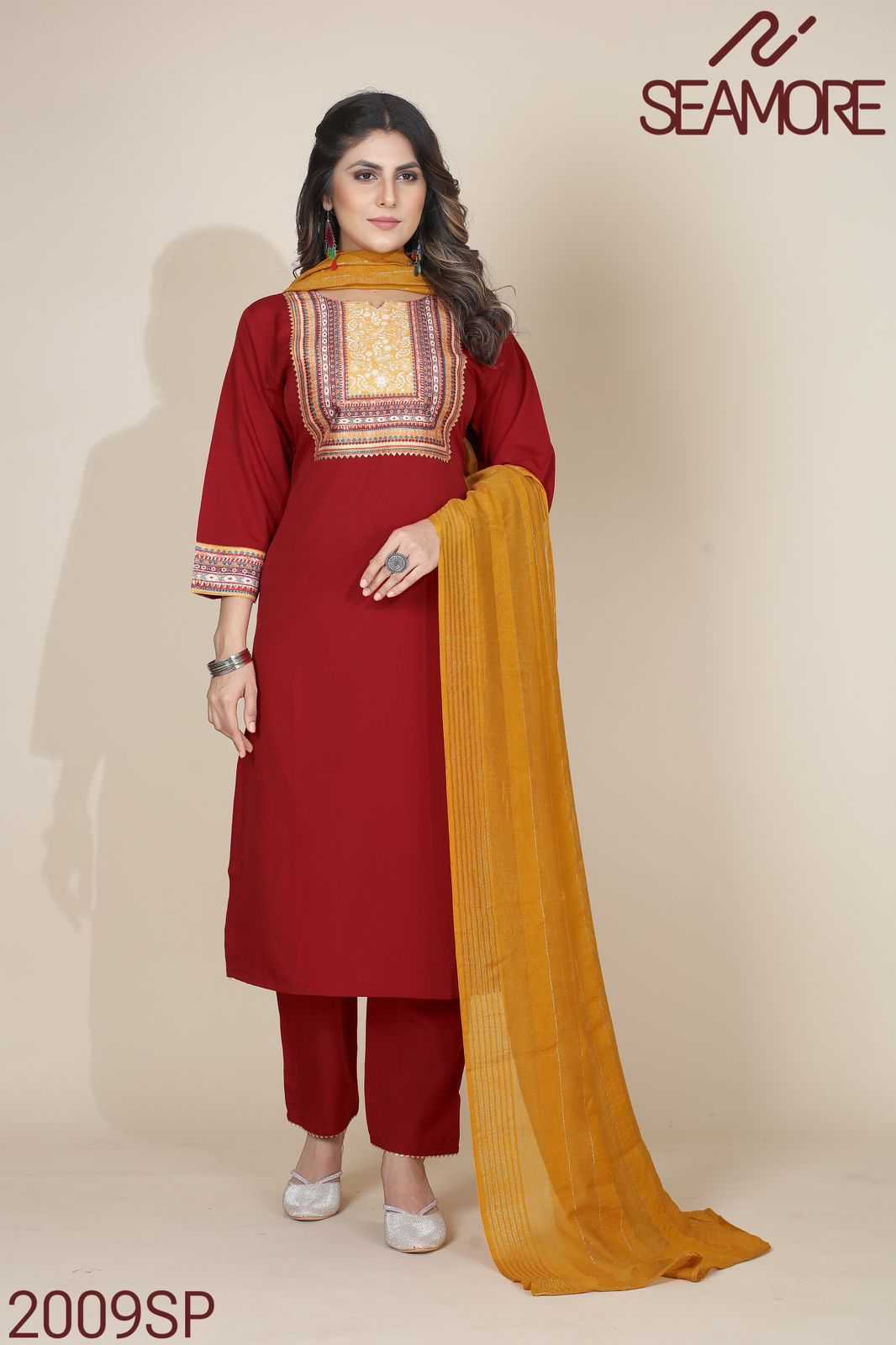 seamore pooja plus vol 2 fullstitch elegant digital print kurti pant dupatta