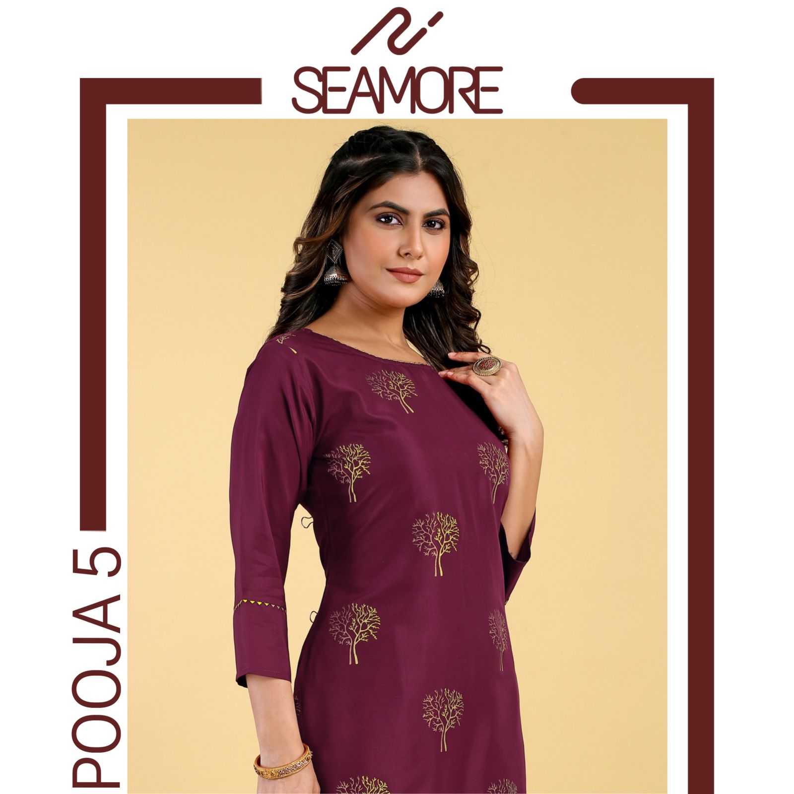 seamore pooja vol 5 beautiful fullstitch straight kurti with bottom wholesaler