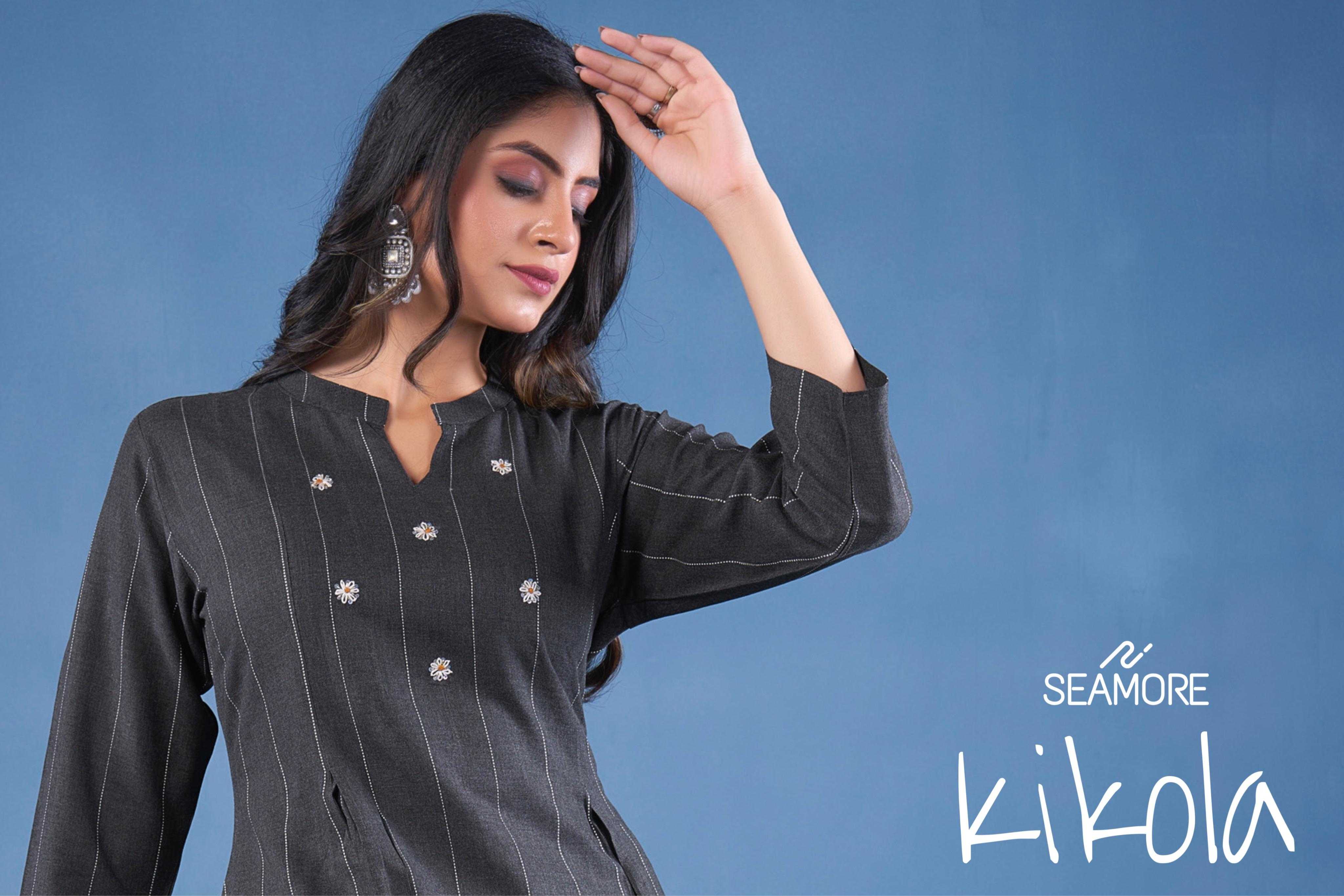 seamore presents kikola trendy outfit full stitch women kurta with pant