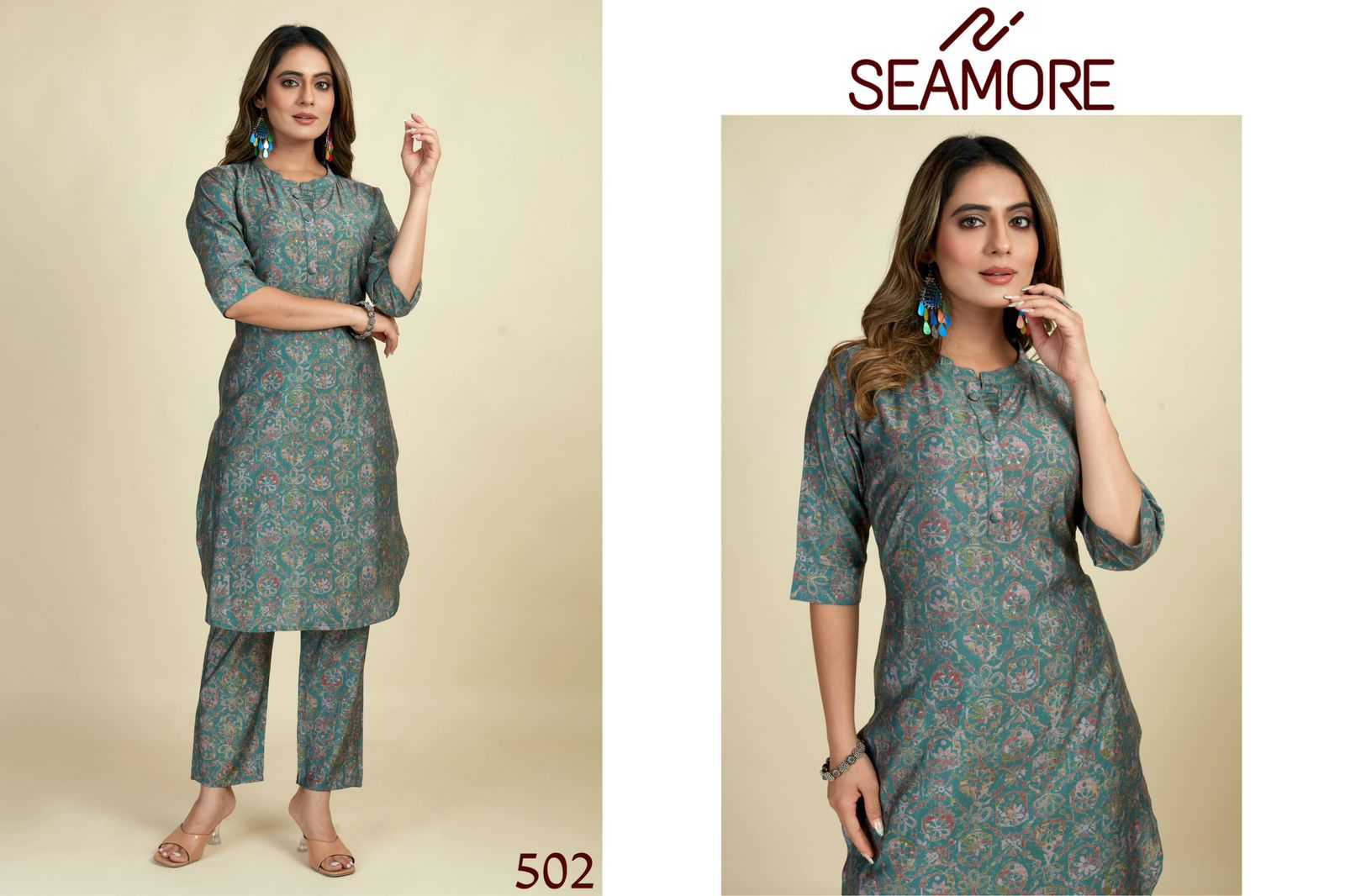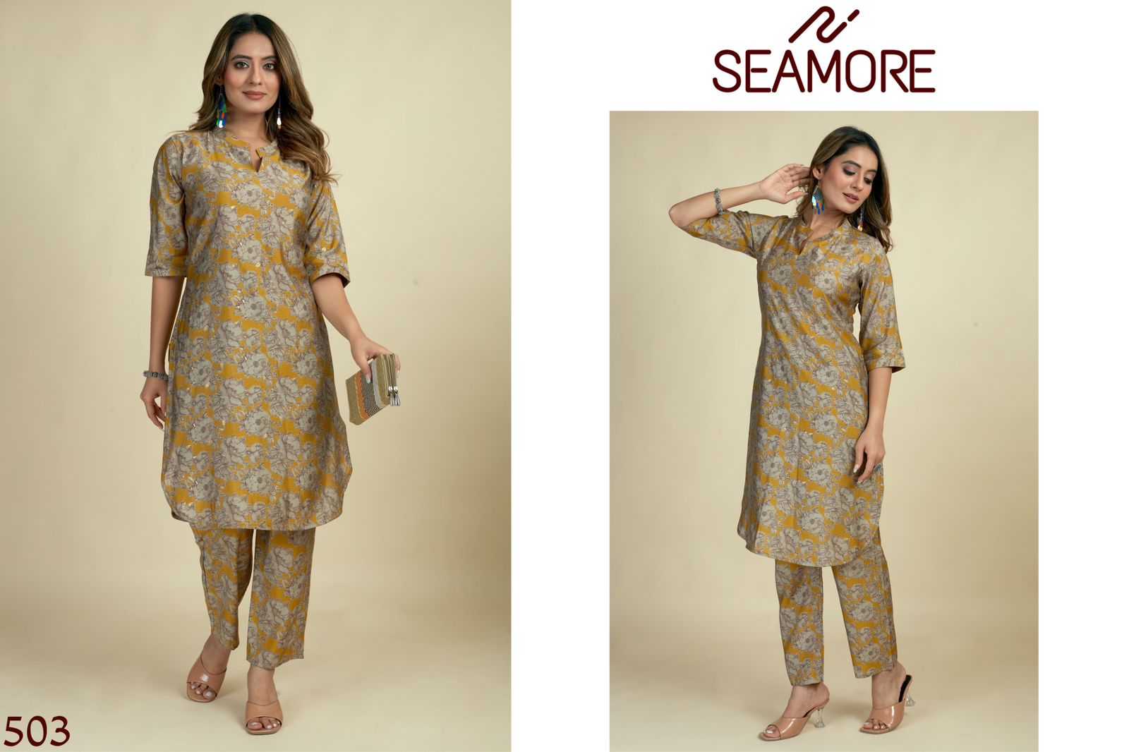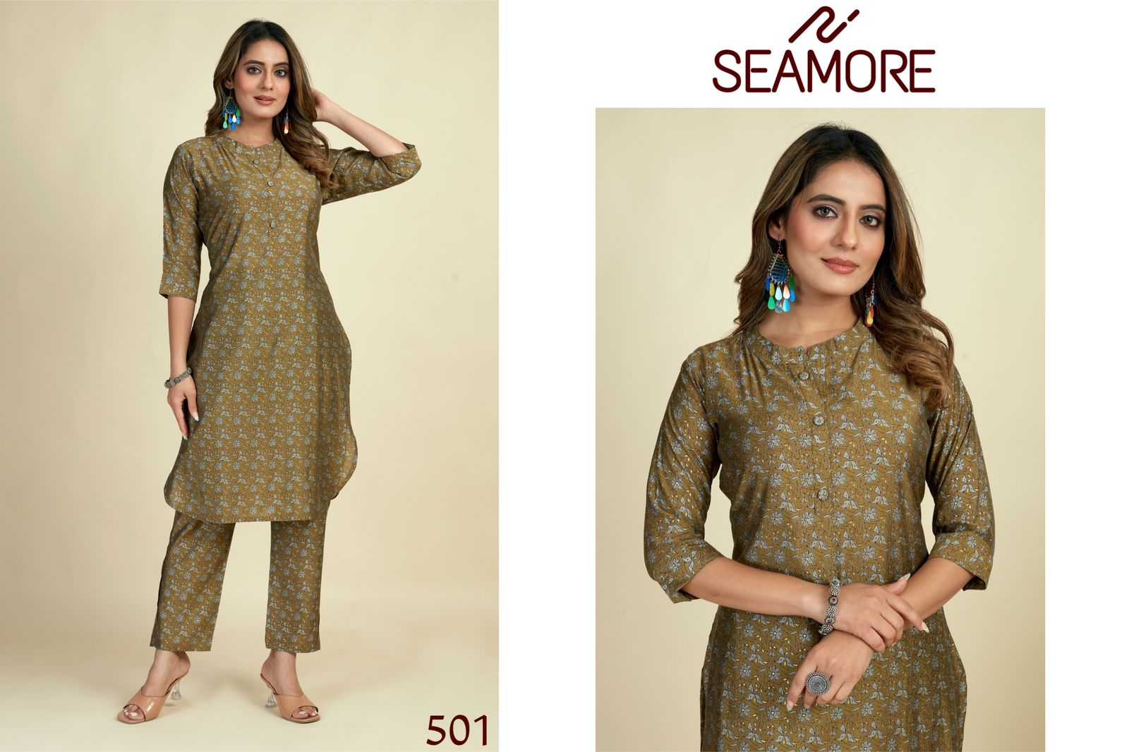 Brand - Seamore Catalog - Prisha One Product typ - Women Kurta With Bottom Pant Design number - 501 To 503 Size - M To 3XL Fabric - Modal Viscose Fabric Pattern - Colour Printe With Foil Print Price - 850/- Order Size Set (501 - M,L,XL,XXL,3XL) |