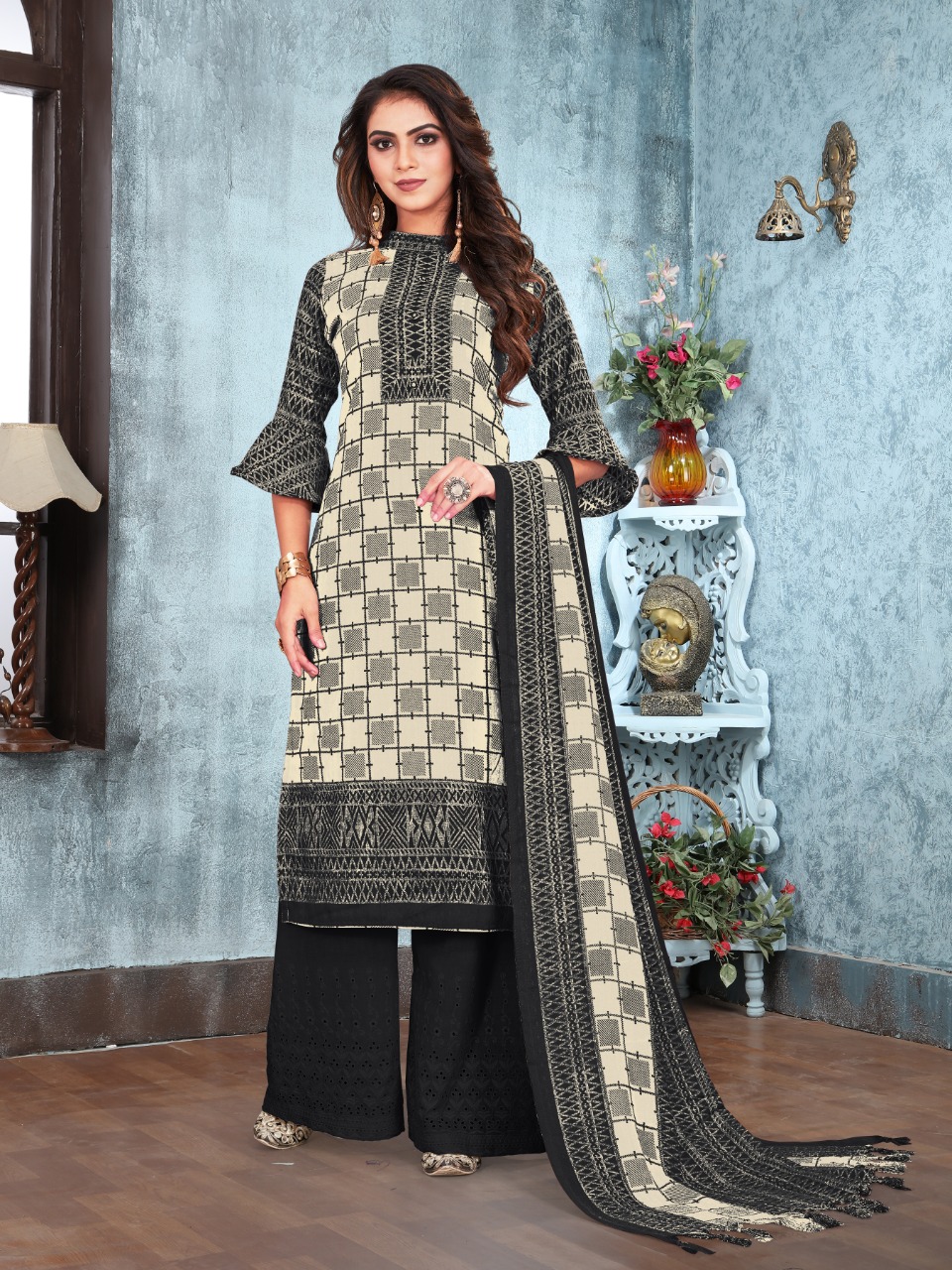 WINTER COLLECTION _ SEASON - 1161 _ TOP :- Pure Pashmina Print . 2.5 mrt Bottom :- Pure Pashmina Plazo Embroidery . 2.7 mtr Dupatta :- _ Pashmina Shawl Print. _2.25 mtr 4 ps catlouge *@ 565 /- * |