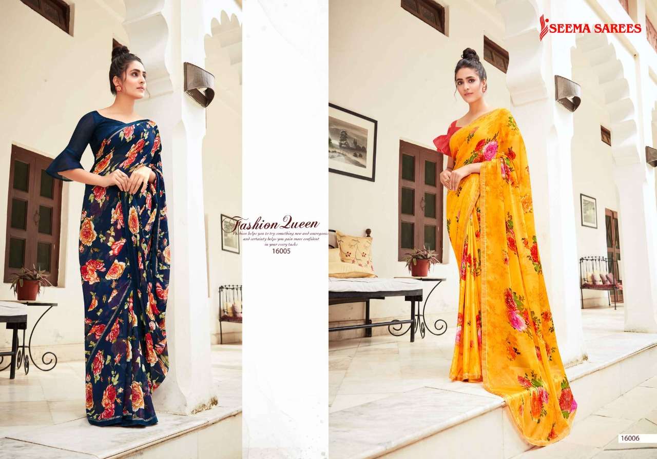 SEEMA SAREES CHIDIYA RATE : *497/- * per pcs Set to set FABRIC : MOSS CHIFFON   SIROSKI WORK IN BODY FULL SAREE LACE Delivery from today |
