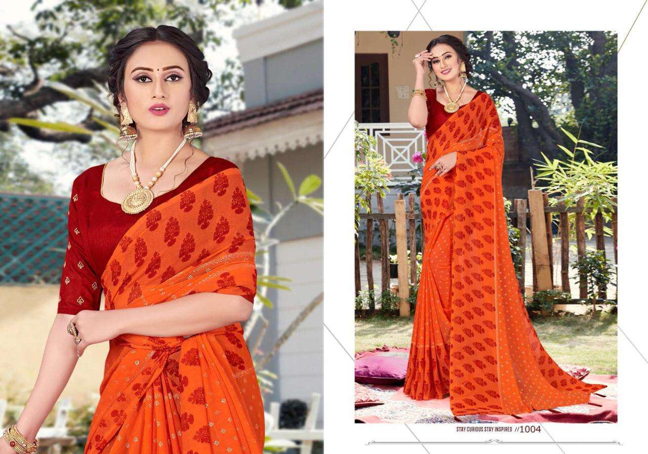 SEEMA SAREES KHWAISH RATE : 535 per Pcs Set to set FABRIC : 60gram GEORGETTE VALUE ADDITION WORK SLEEVES BLOUSE With foil VALUE ADDITION Delivery from today |